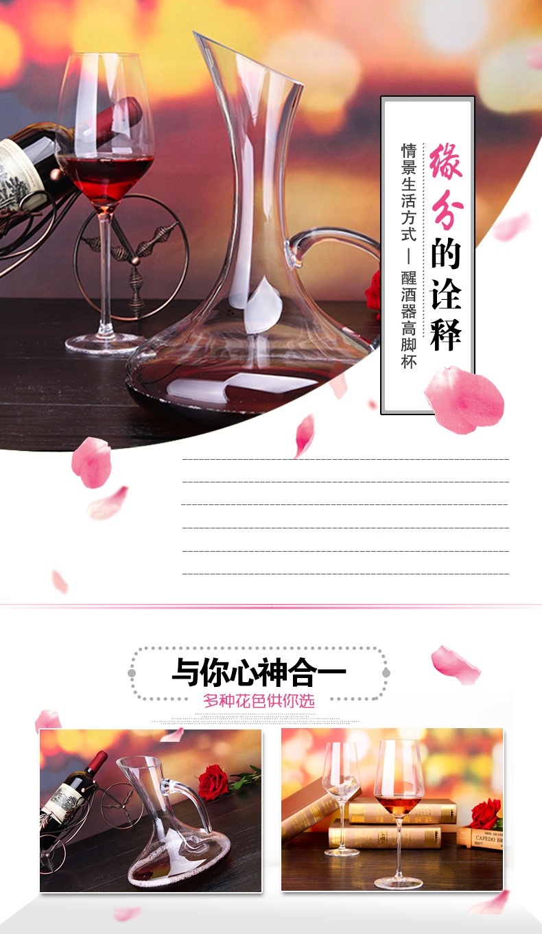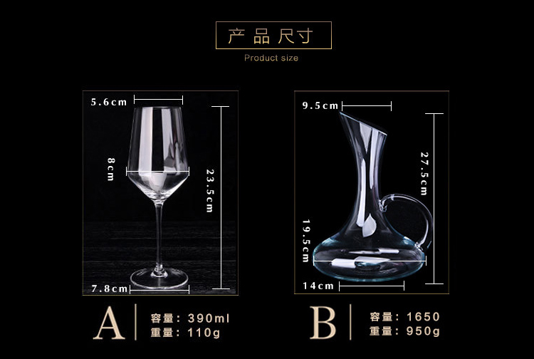 水晶无铅透明杯红酒杯、斜口带把醒酒器套装--聚爱城