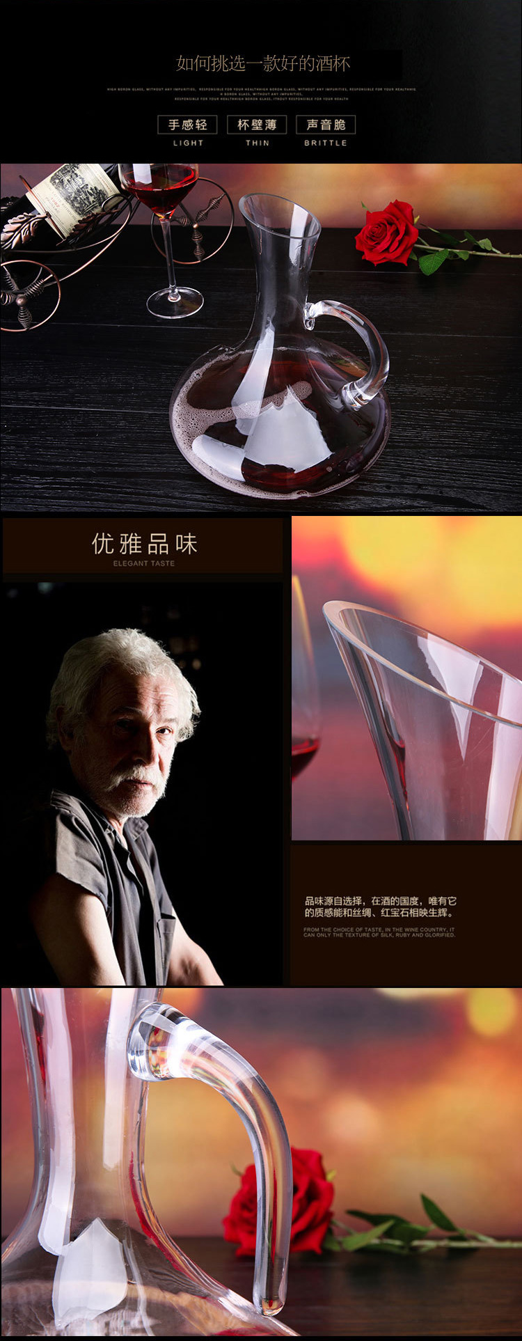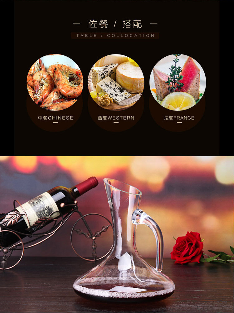 透明高脚红酒杯、斜口带把醒酒器套装