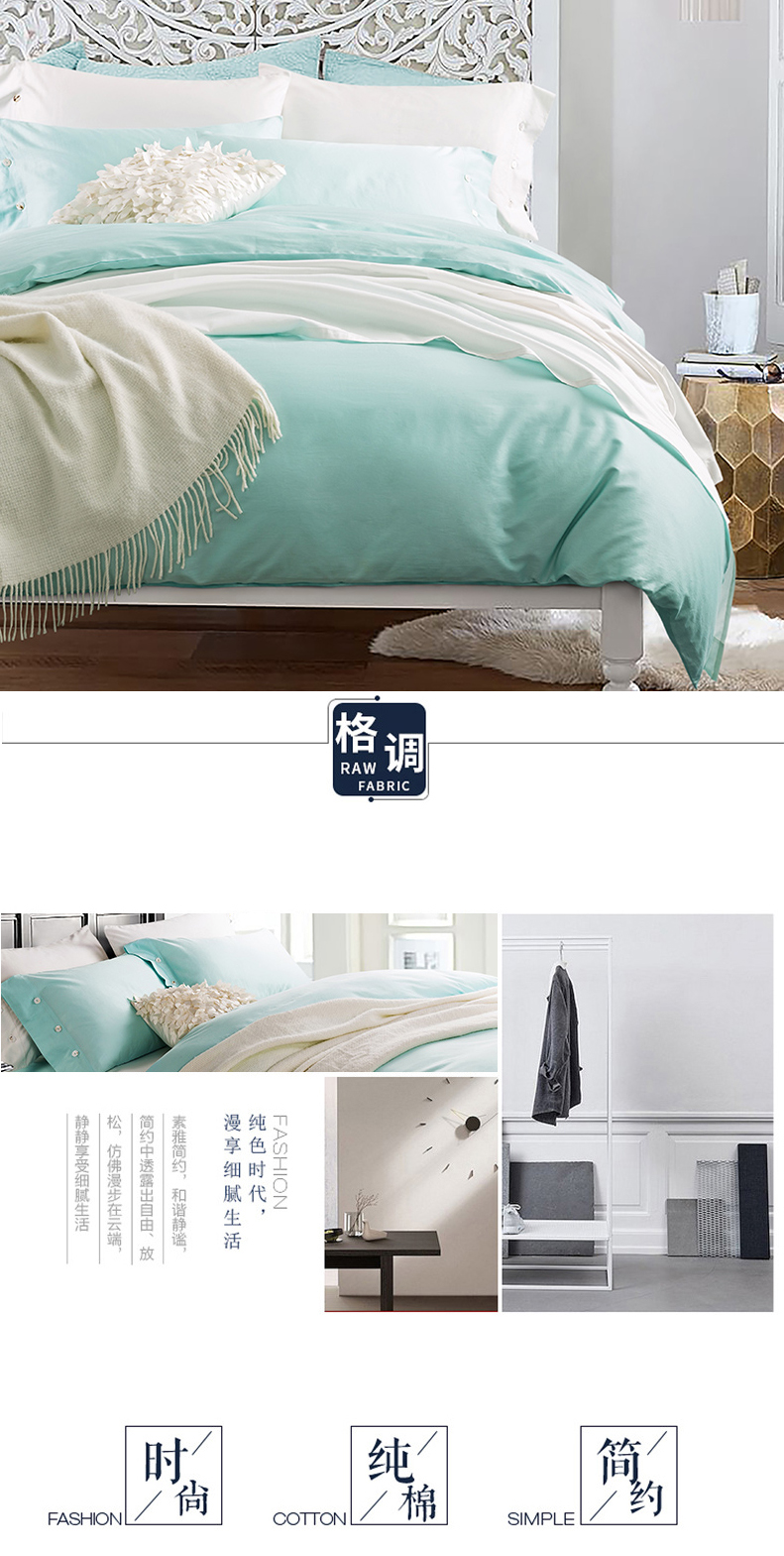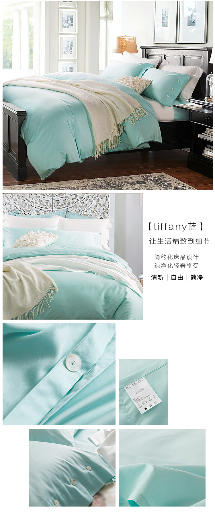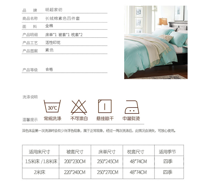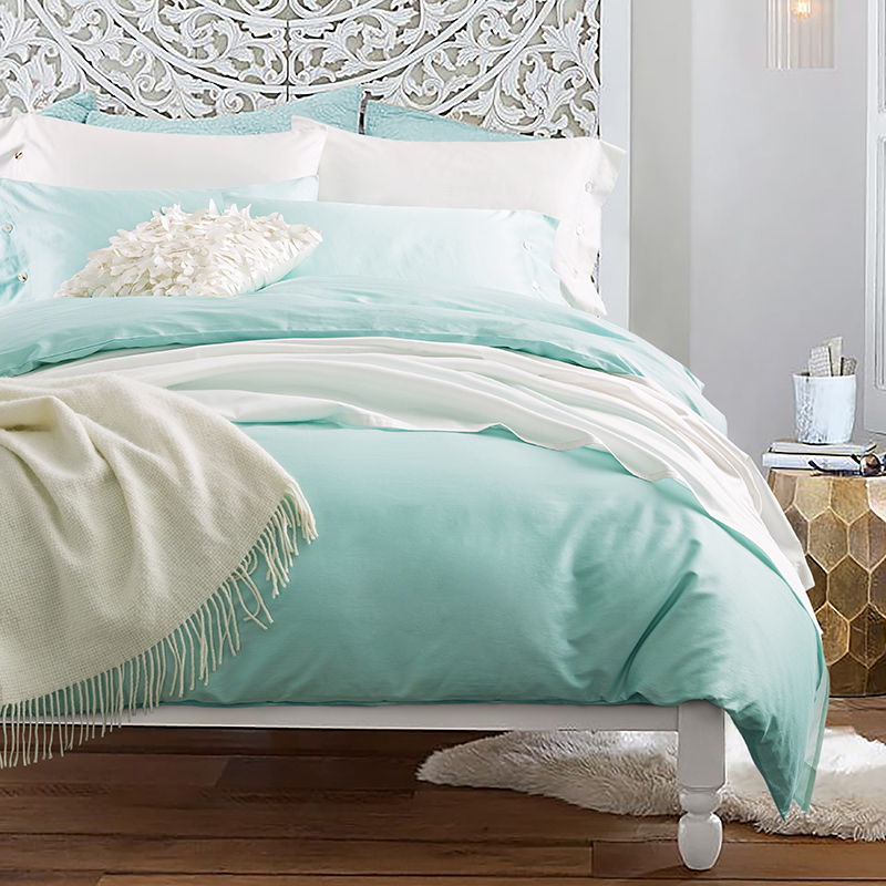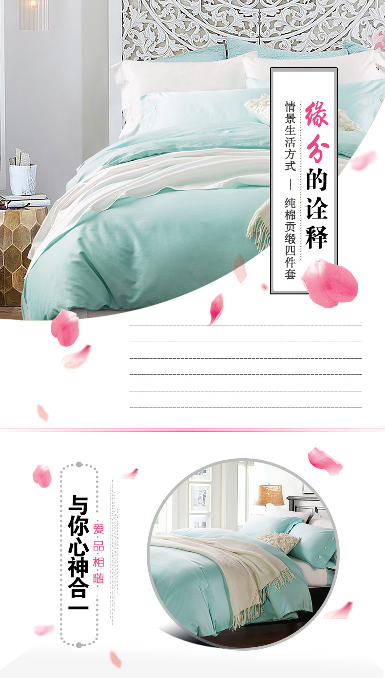 纯棉贡缎60S四件套 全棉纯色新疆长绒棉套件--聚爱城