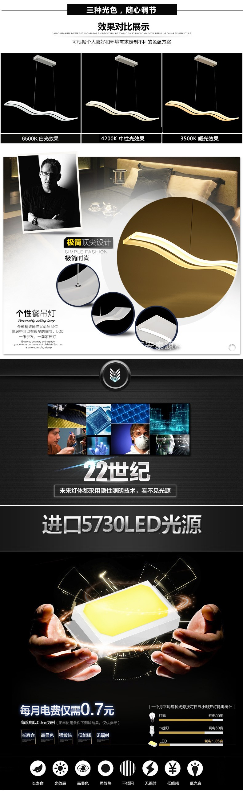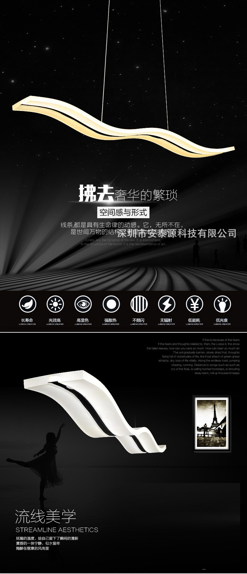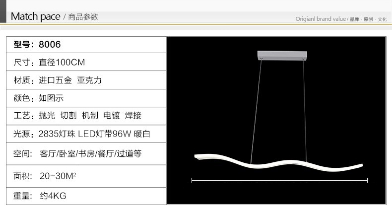 现代简约LED餐厅创意波浪亚克力灯具--聚爱城