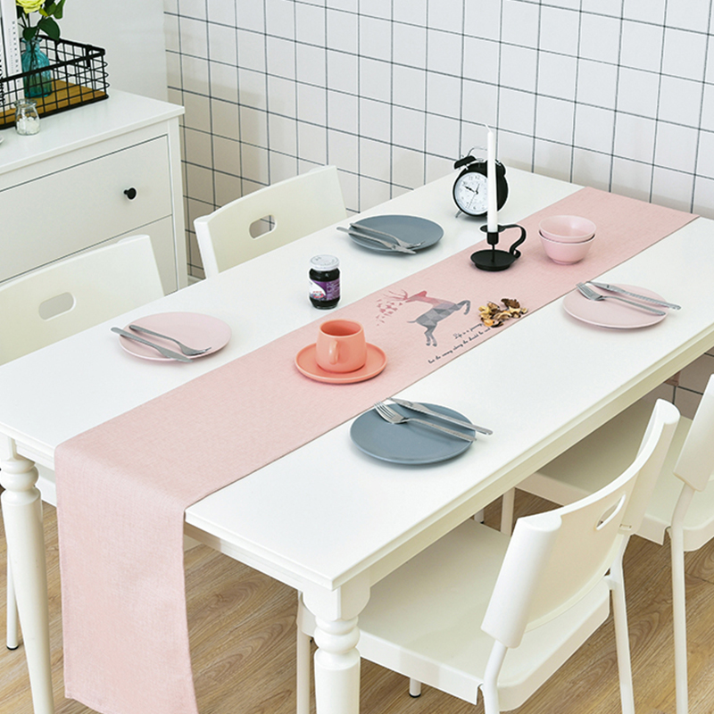 棉麻布艺现代简约格子鹿桌旗装饰