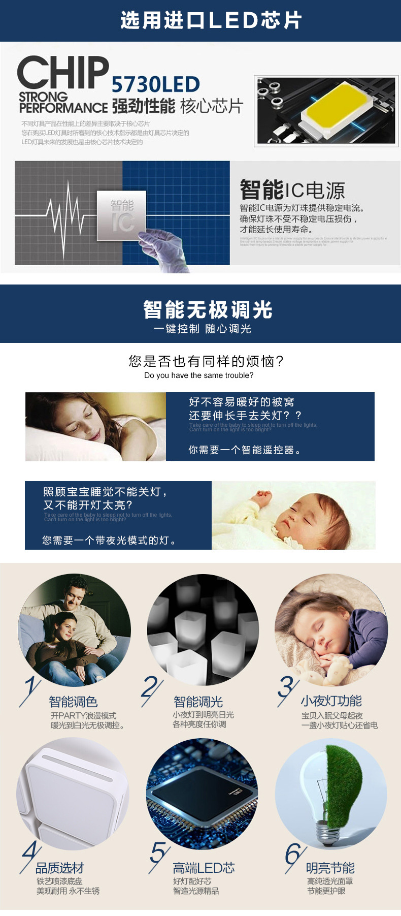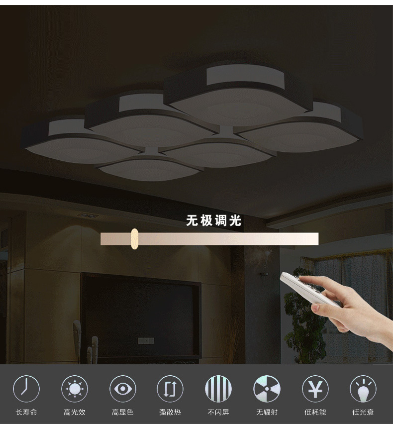 新款卧室异型现代简约遥控LED无极调光吸顶灯
