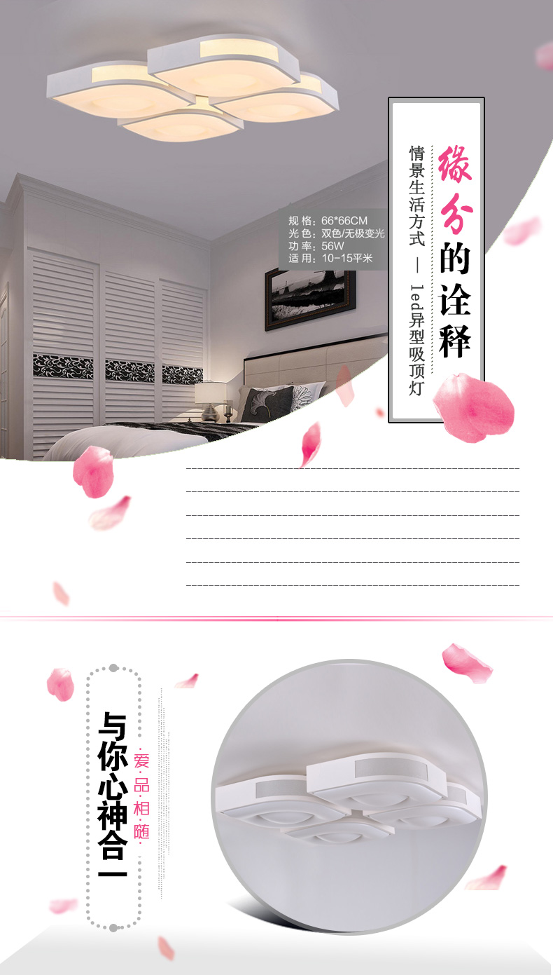 新款卧室异型现代简约遥控LED无极调光吸顶灯--聚爱城
