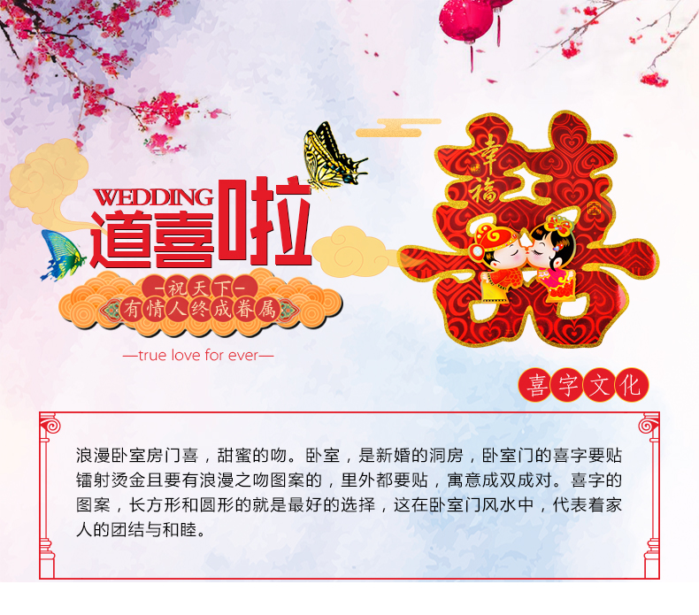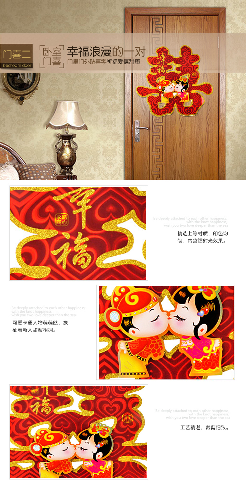 卧室门喜寓意百年好合共度人生之喜“洞房花烛”