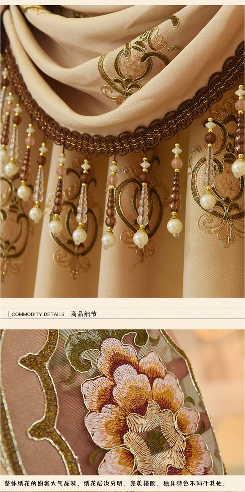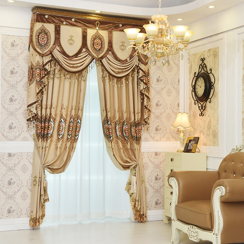 环保麻布绣花遮光布 客厅大气窗帘--聚爱城