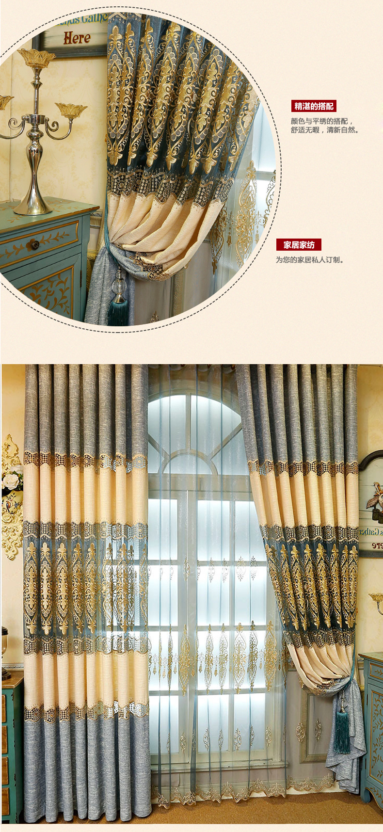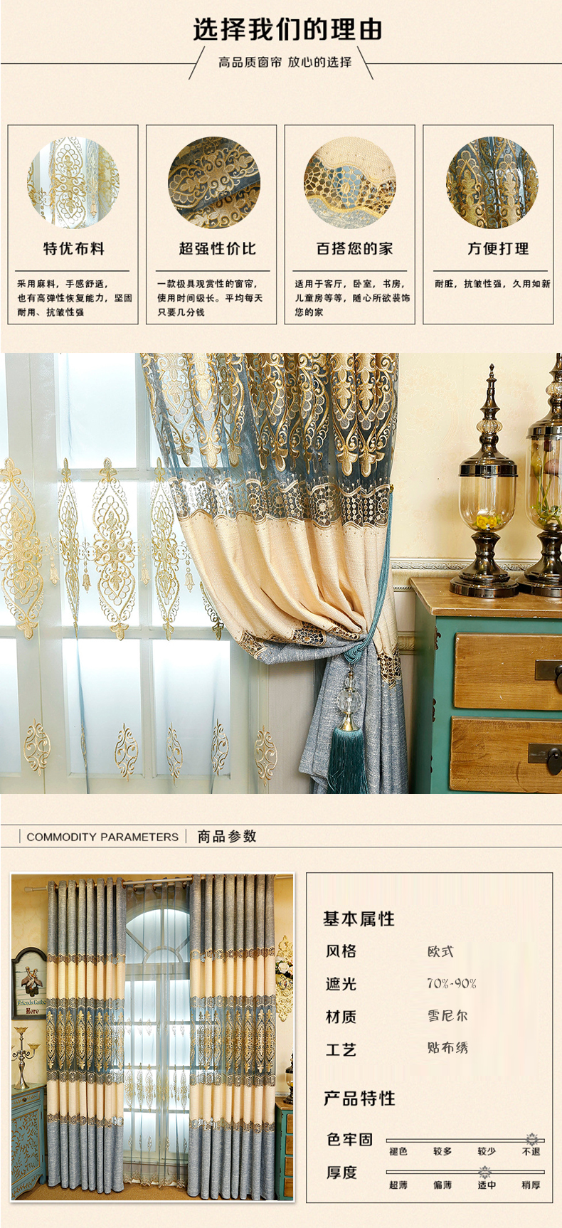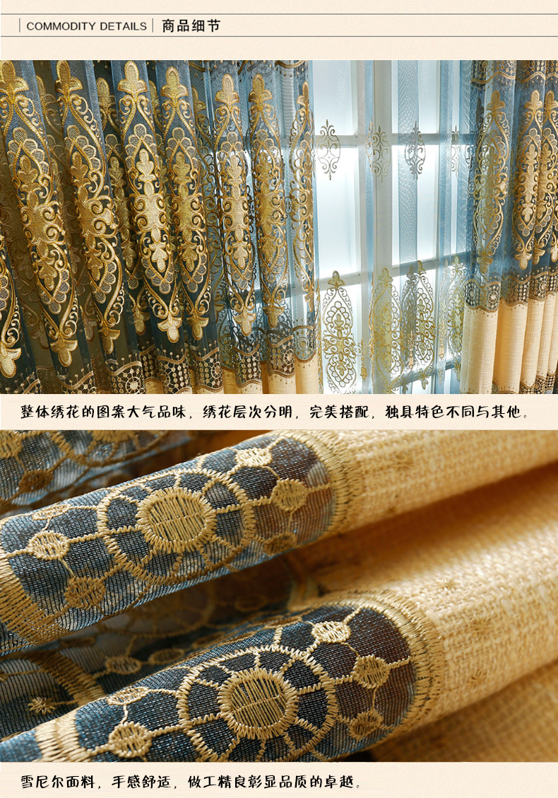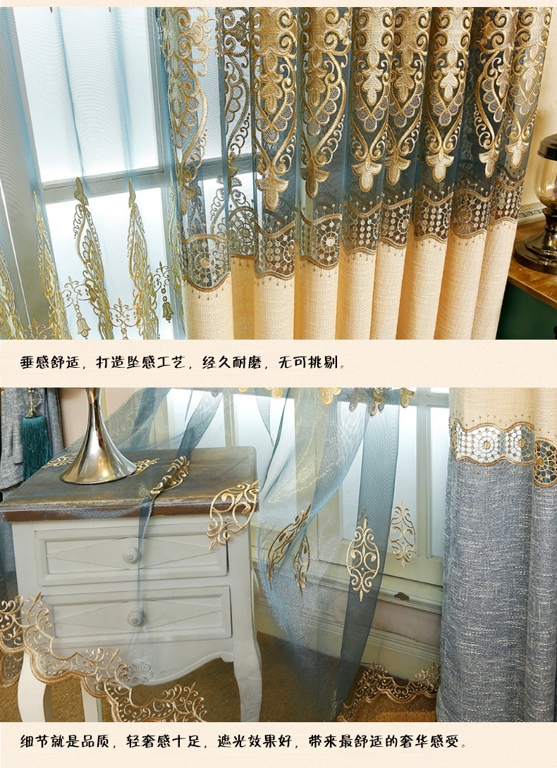 客厅拼接棉麻绣花窗帘窗纱