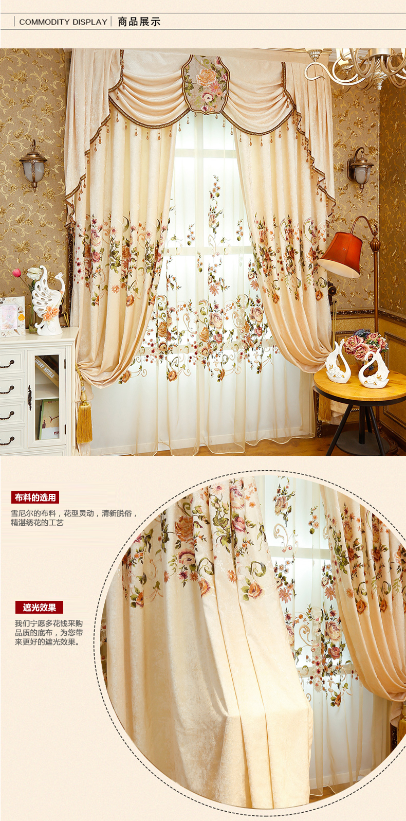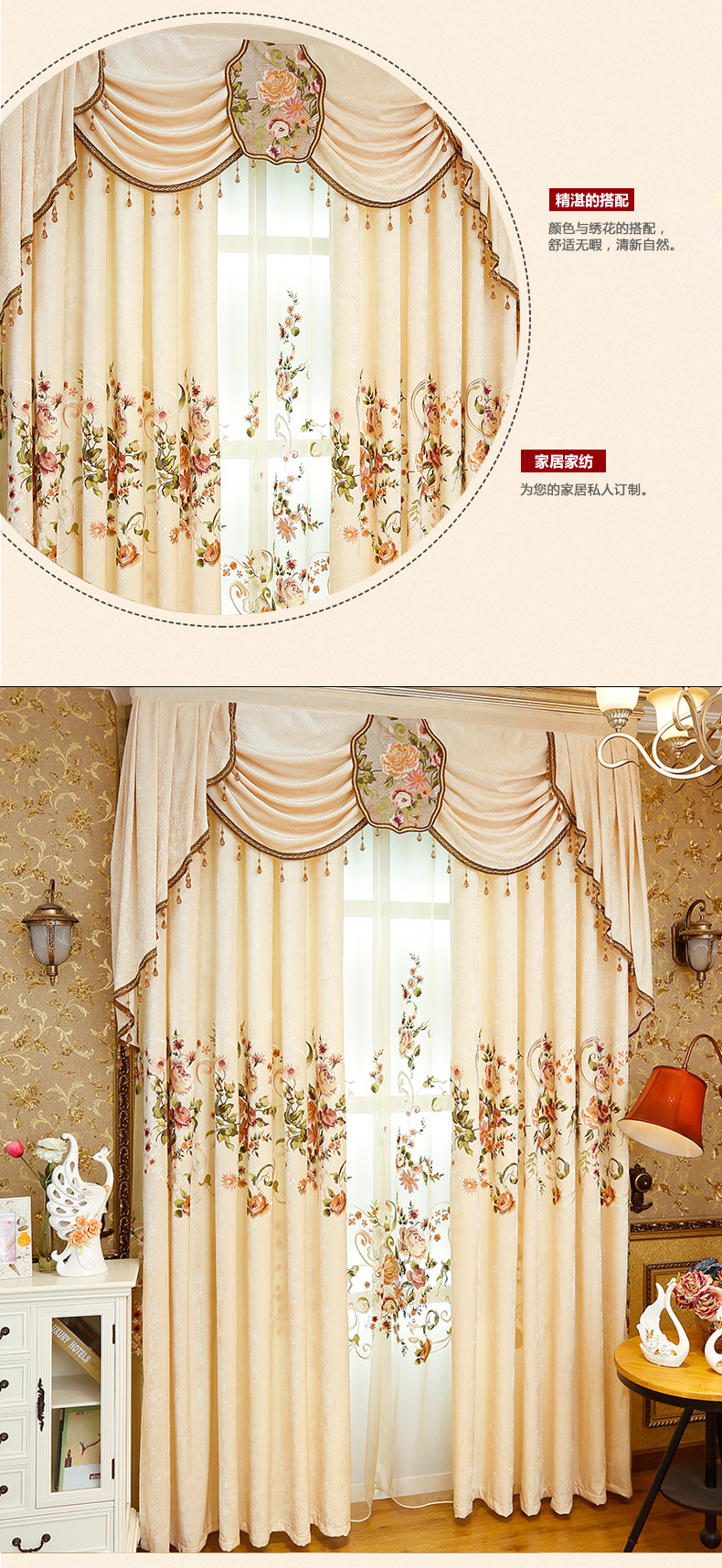 美式雪尼尔绣花窗帘--聚爱城