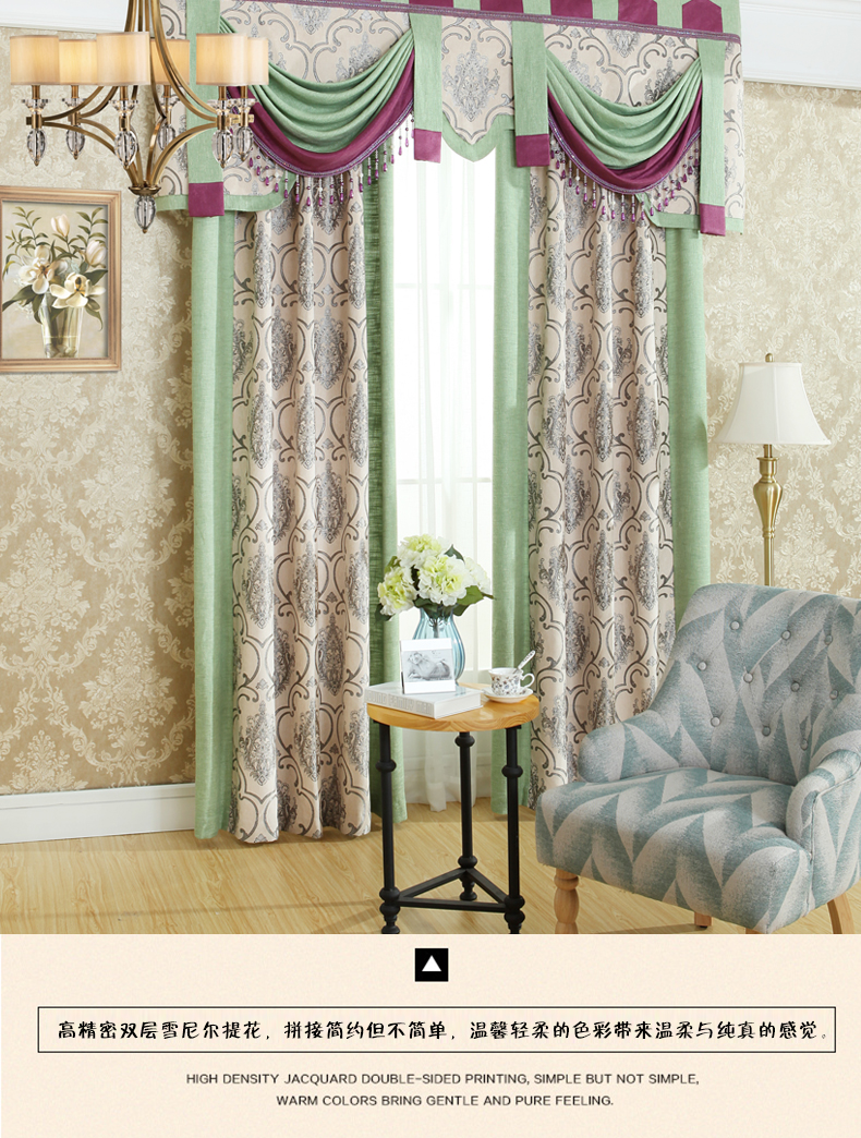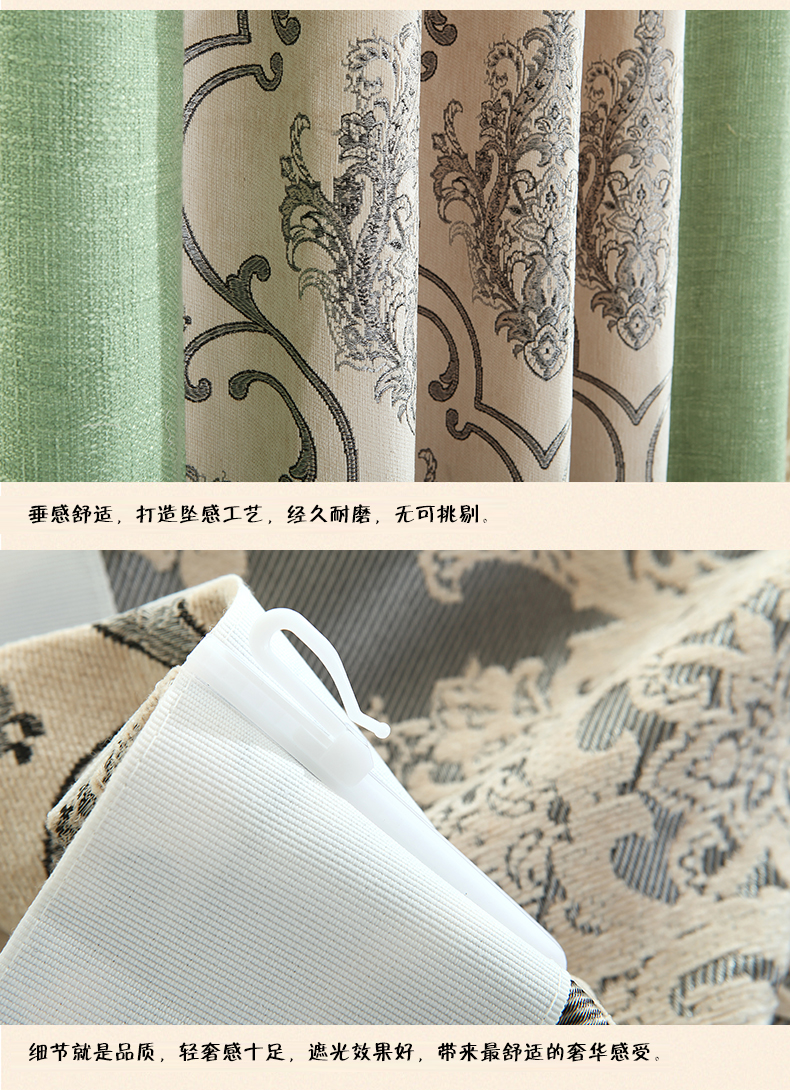 双面雪尼尔提花拼接遮光窗帘