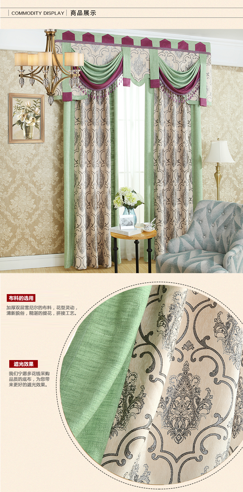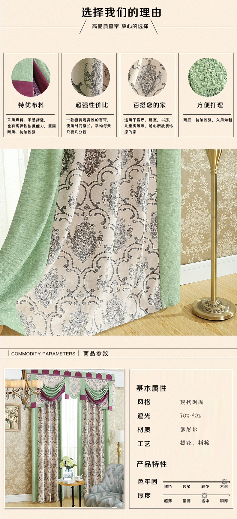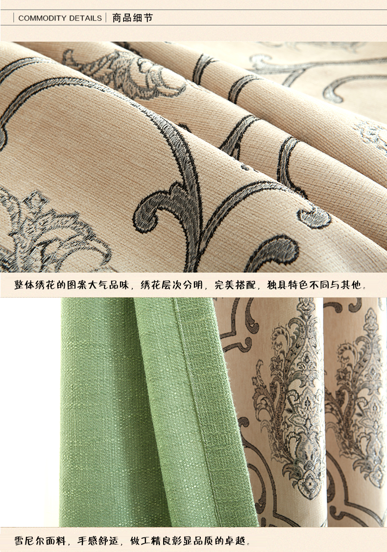 双面雪尼尔提花拼接遮光窗帘--聚爱城
