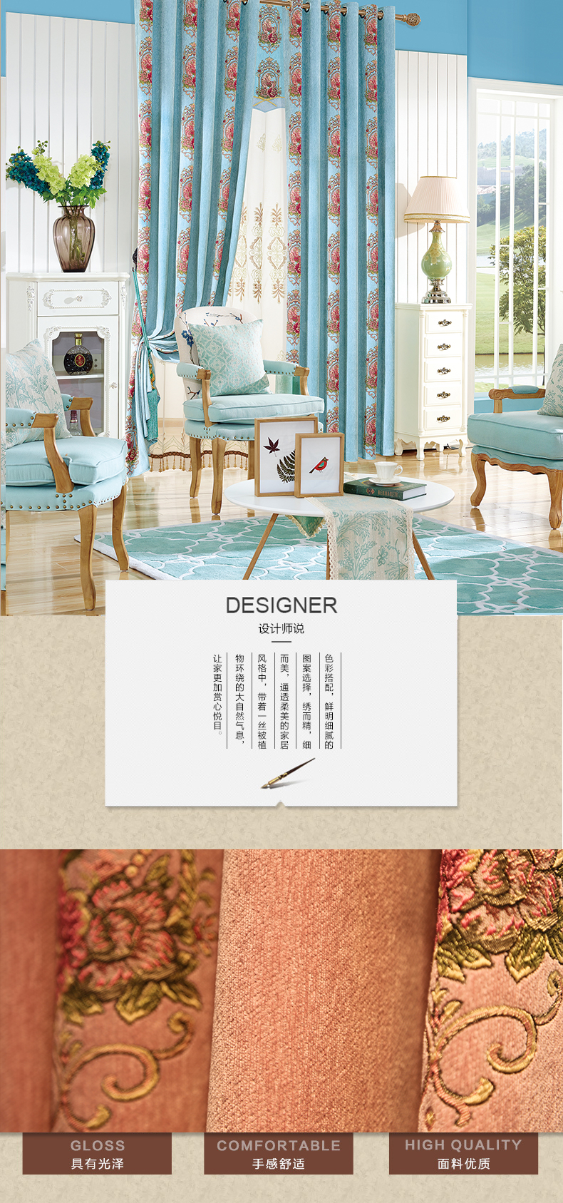 时尚欧式玫瑰花提花窗帘--聚爱城