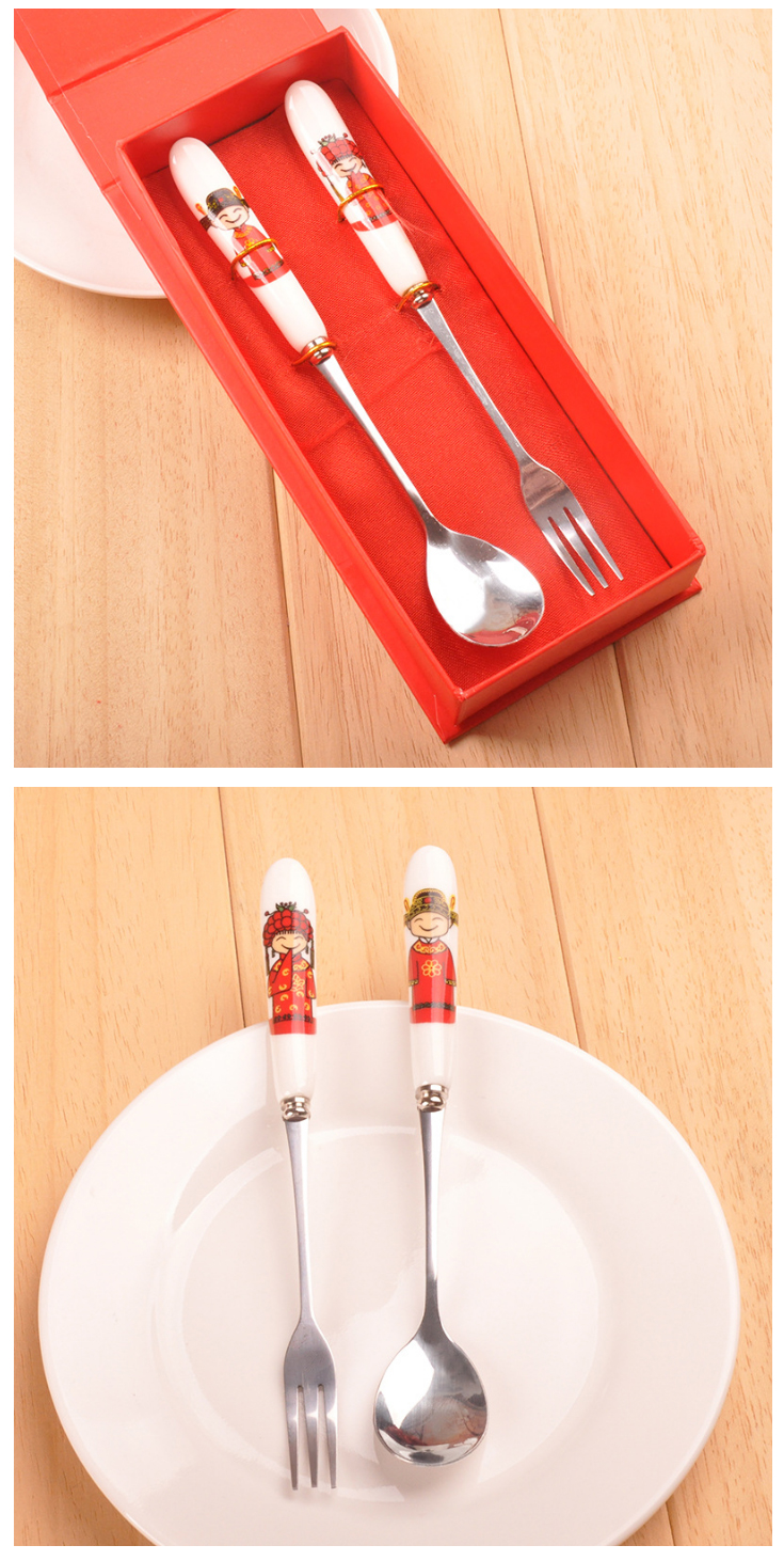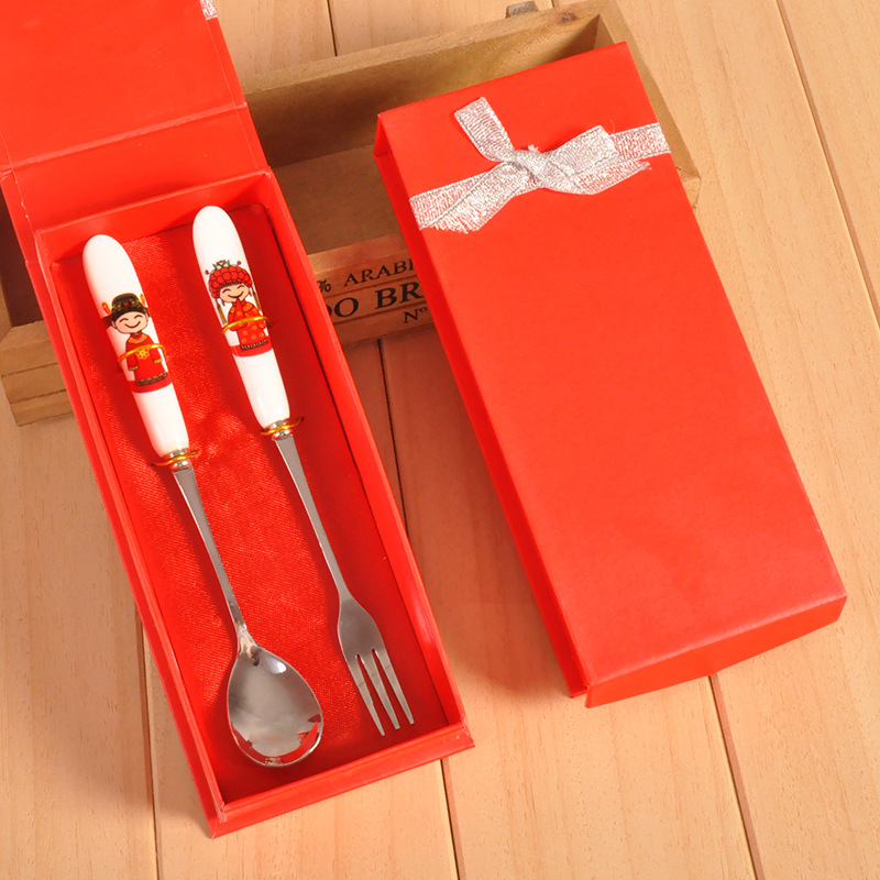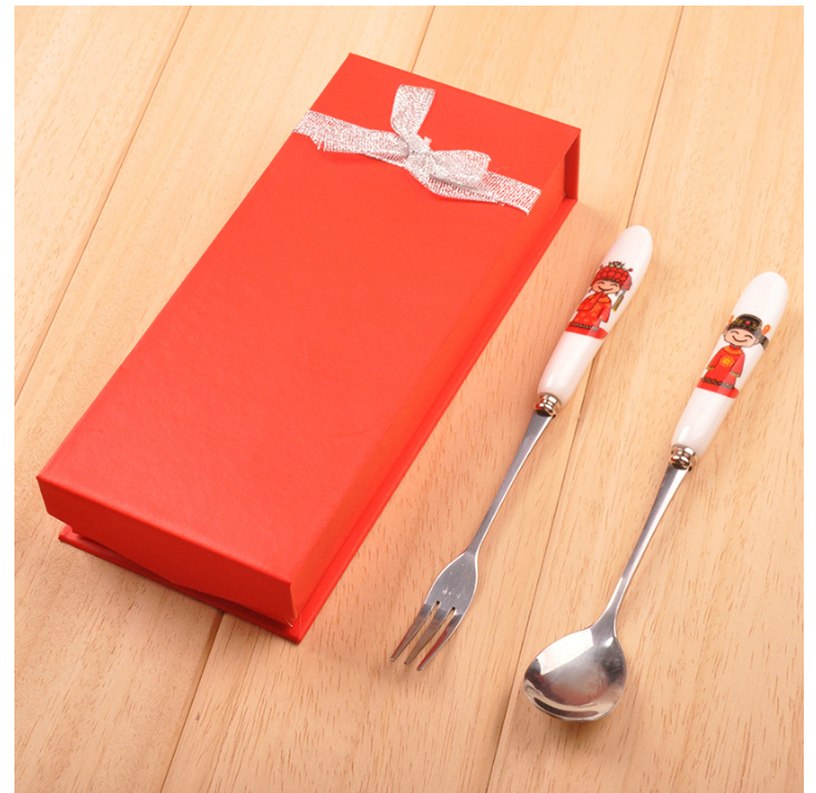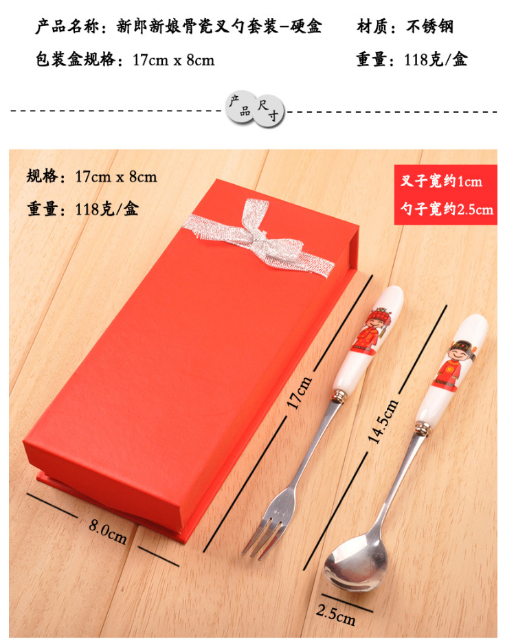 喜庆婚礼骨瓷叉勺回礼套装
