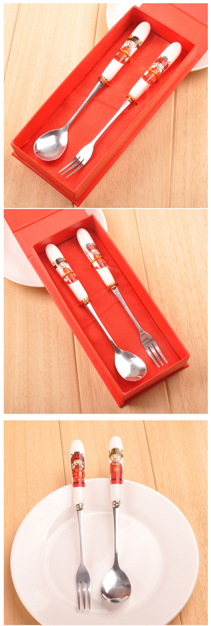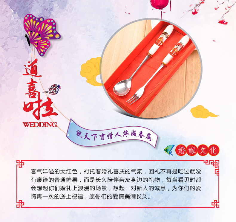 喜庆婚礼骨瓷叉勺回礼套装--聚爱城