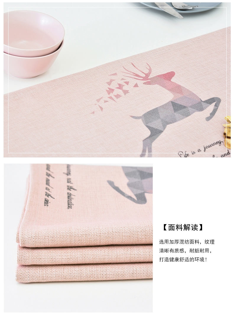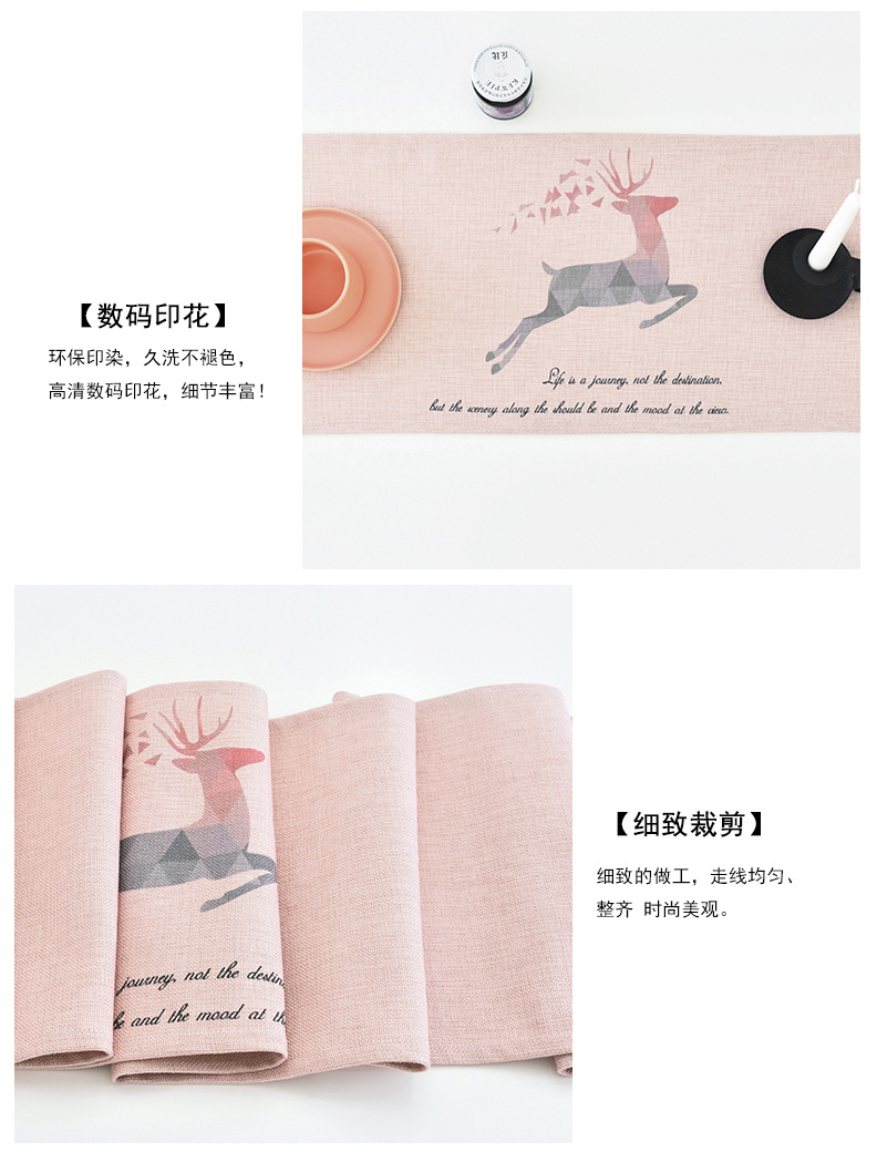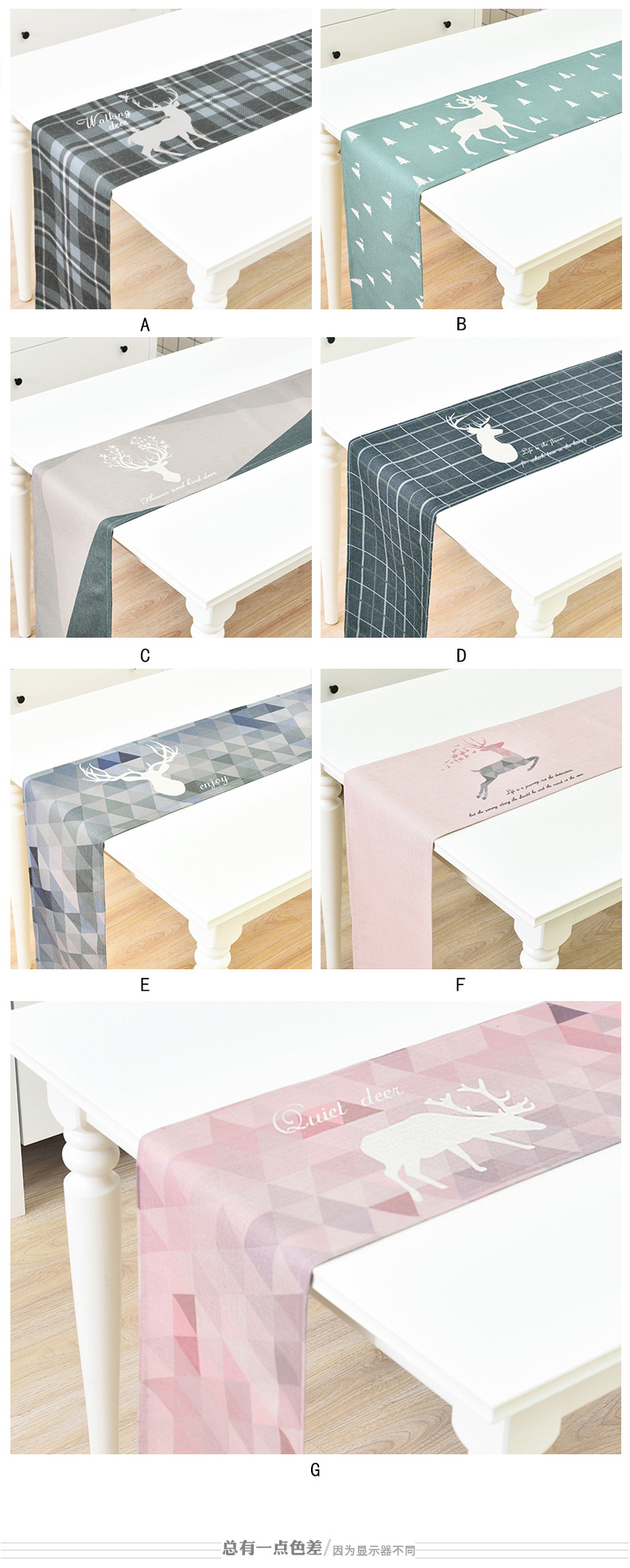 棉麻布艺现代简约格子鹿桌旗装饰--聚爱城