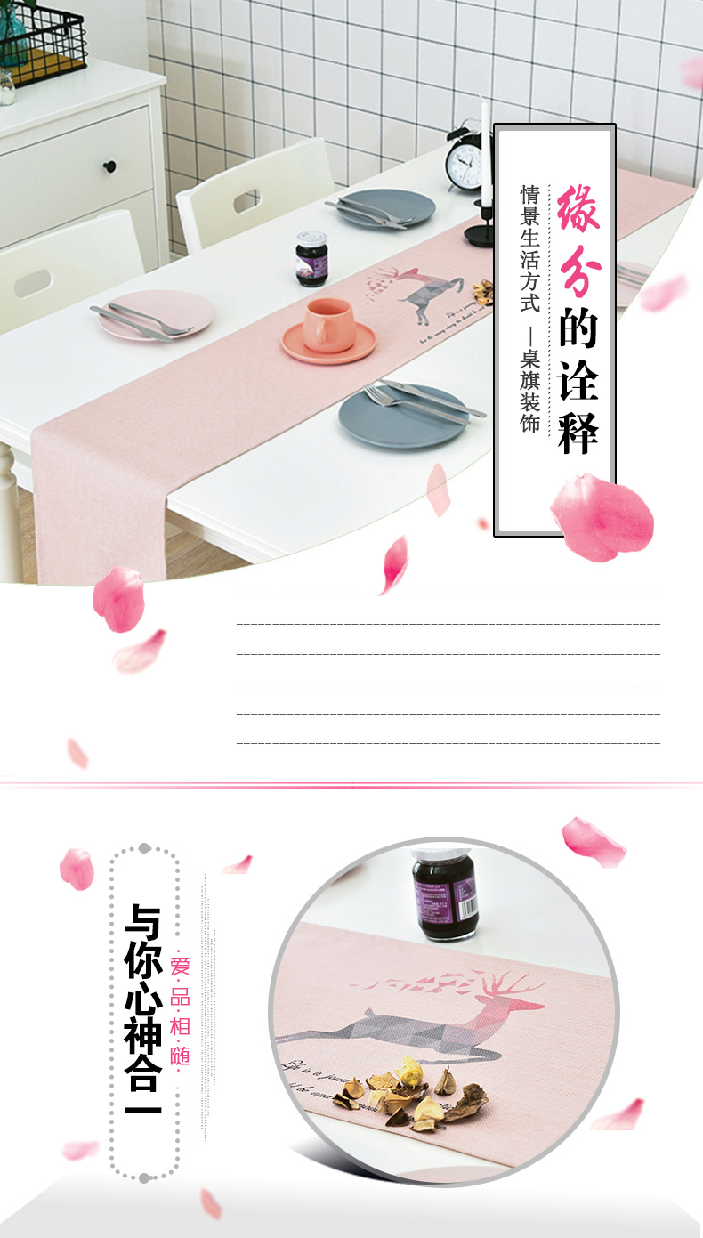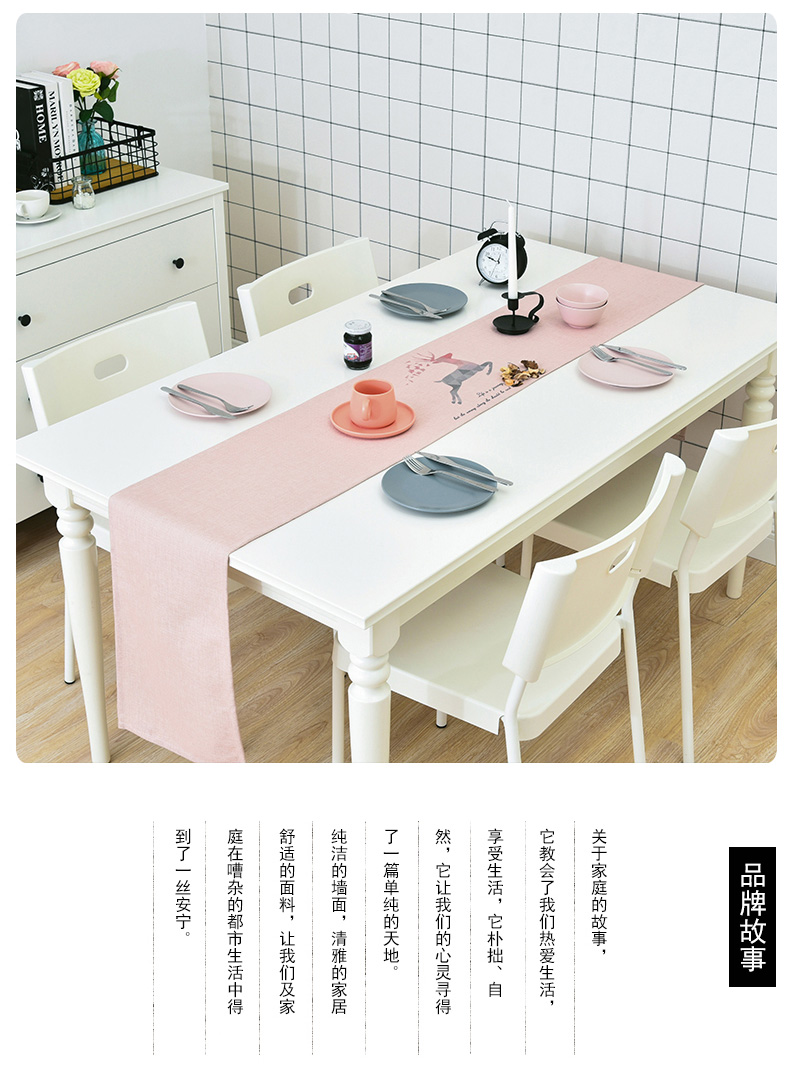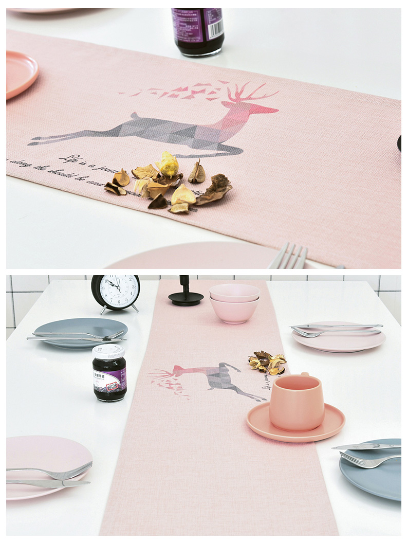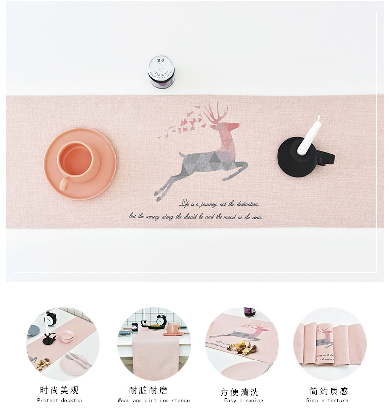 棉麻布艺现代简约格子鹿桌旗装饰--聚爱城