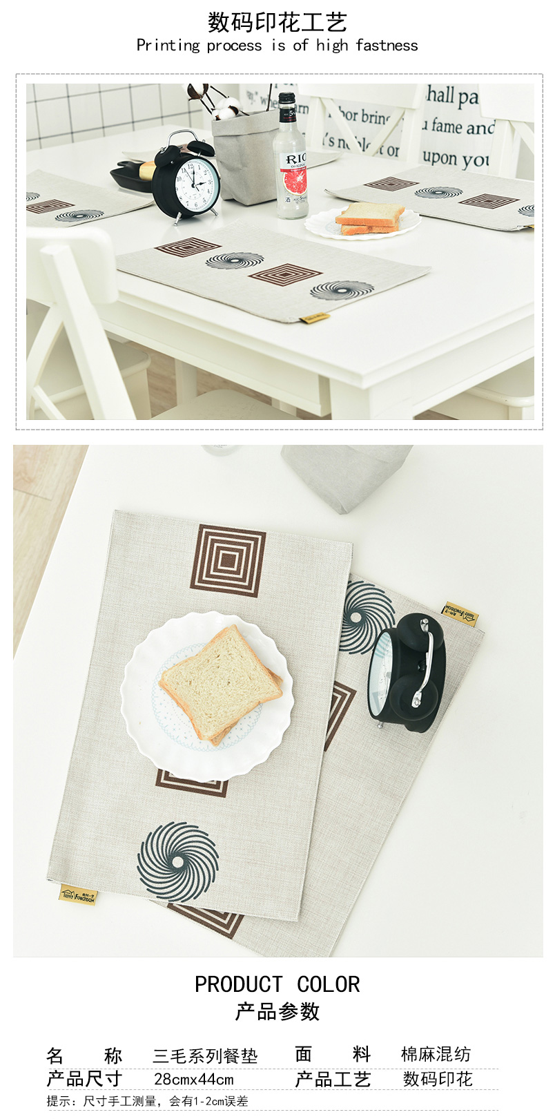 加厚棉麻家用餐垫隔热垫