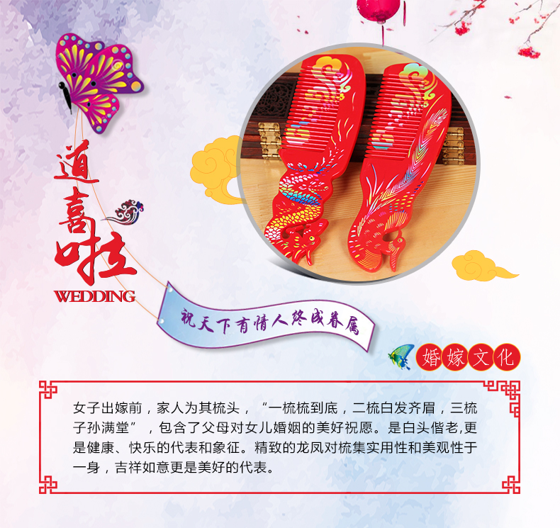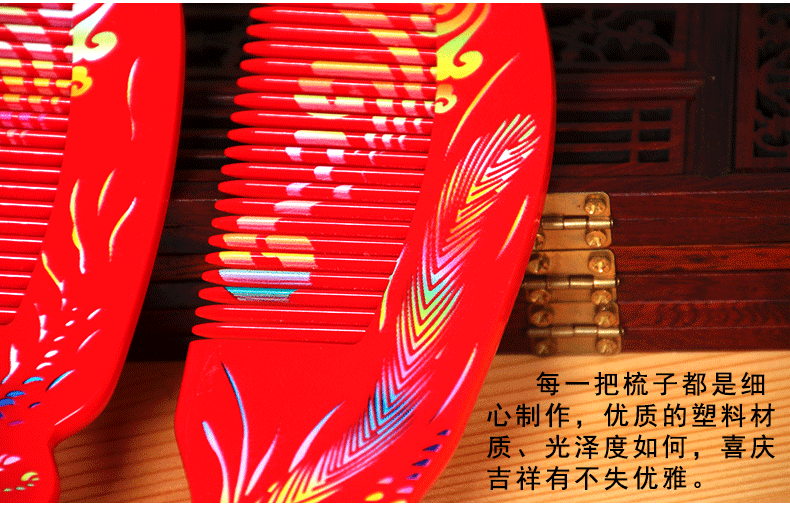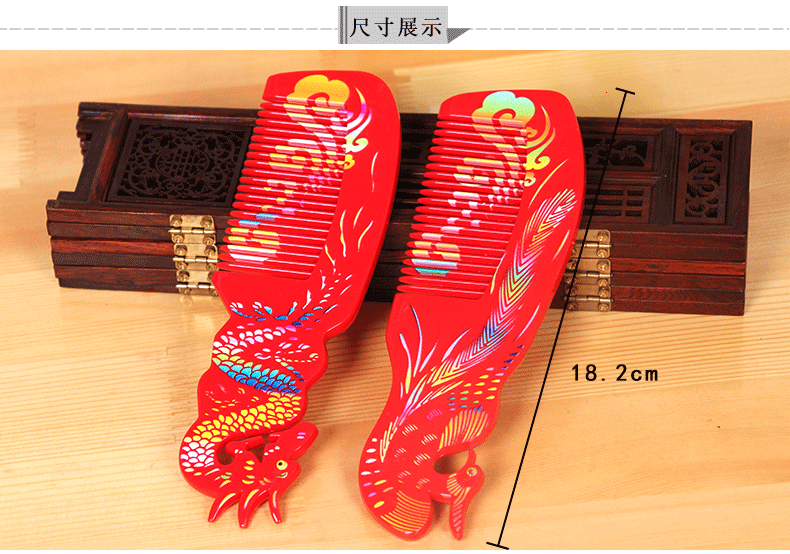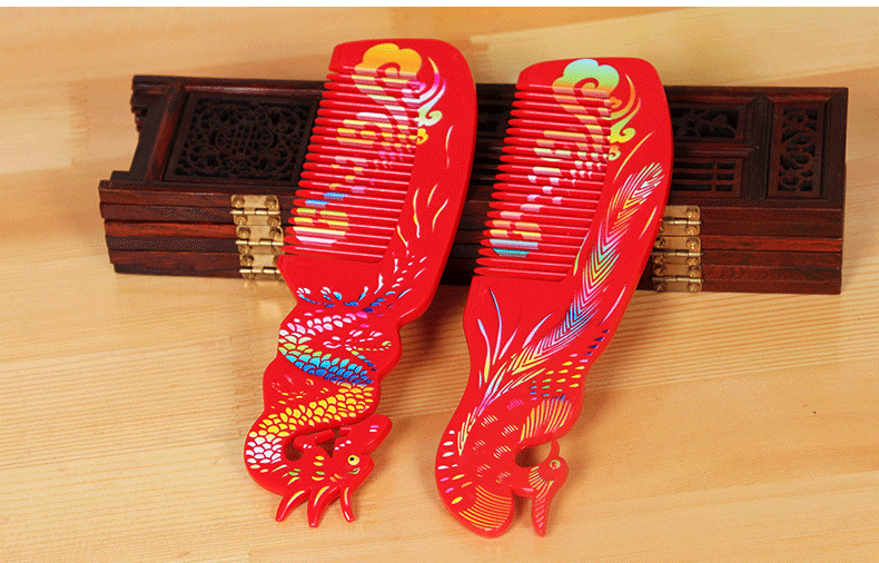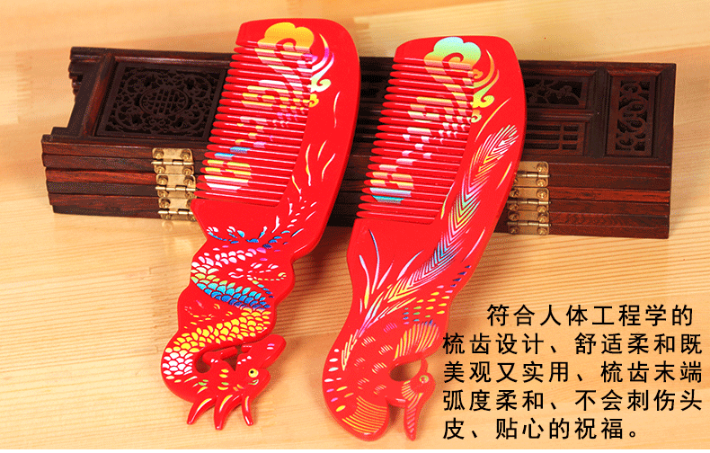彩色龙凤对梳陪嫁用品喜庆梳子--聚爱城