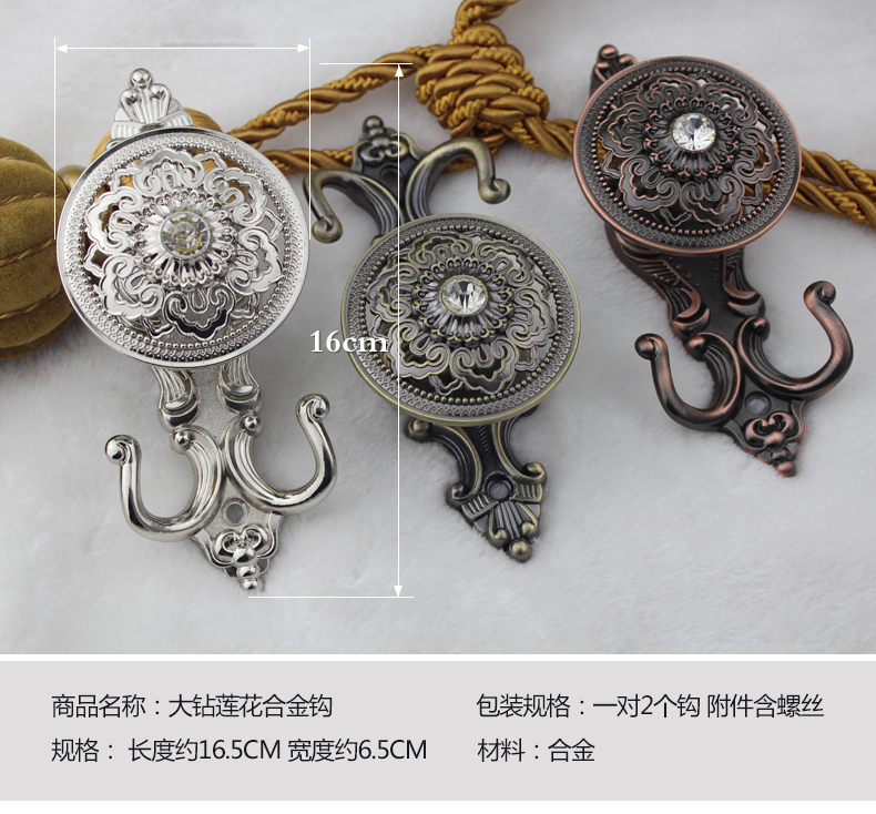 大钻莲花合金客厅墙钩壁钩--聚爱城
