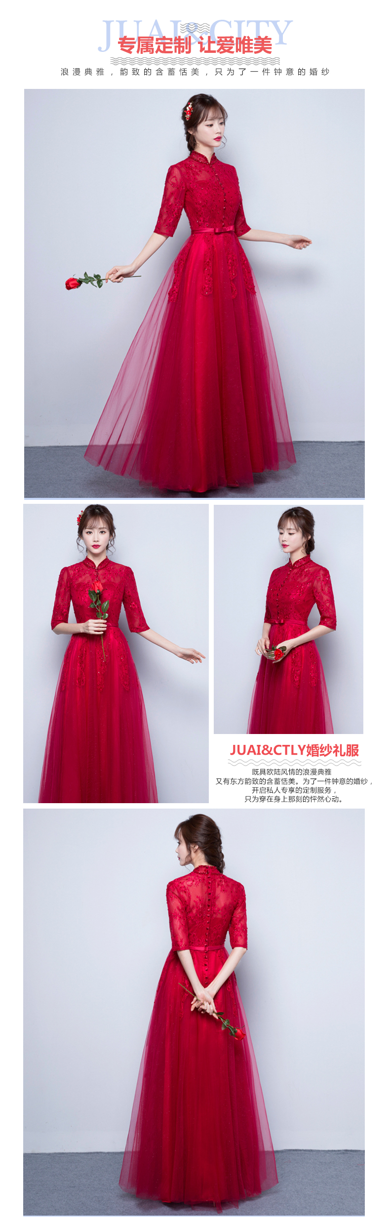 长袖旗袍新娘红敬酒服--聚爱城