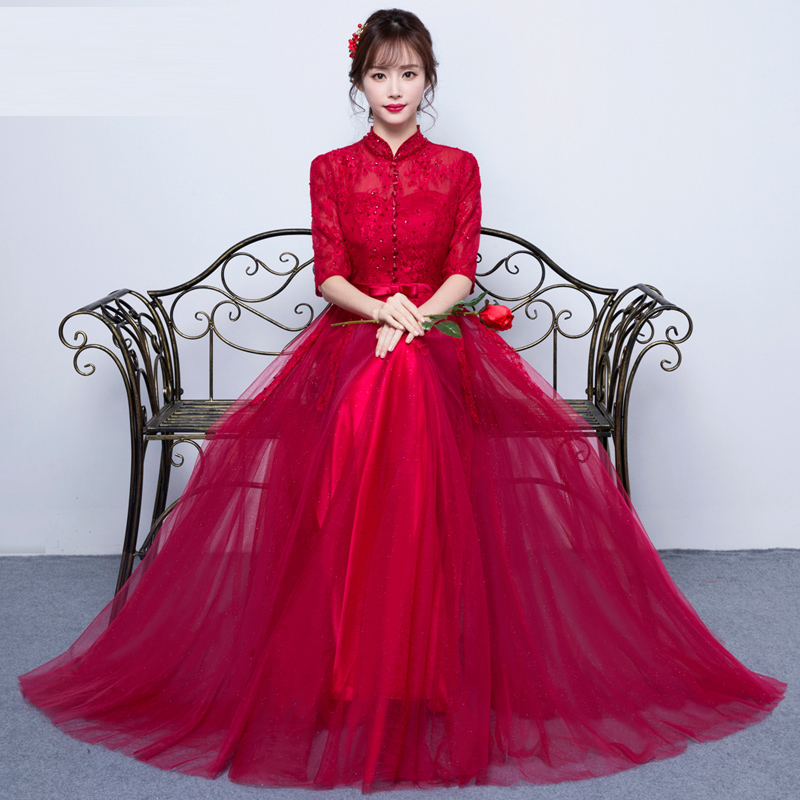 长袖旗袍新娘红敬酒服