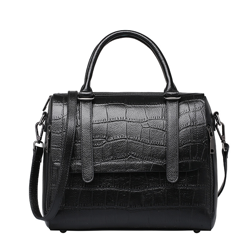 【黑色】鳄鱼纹头层牛皮欧美时尚女包