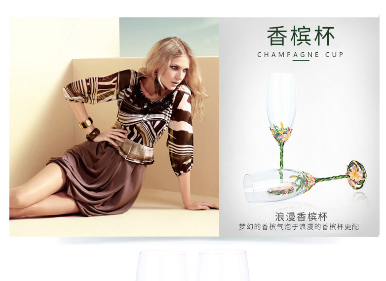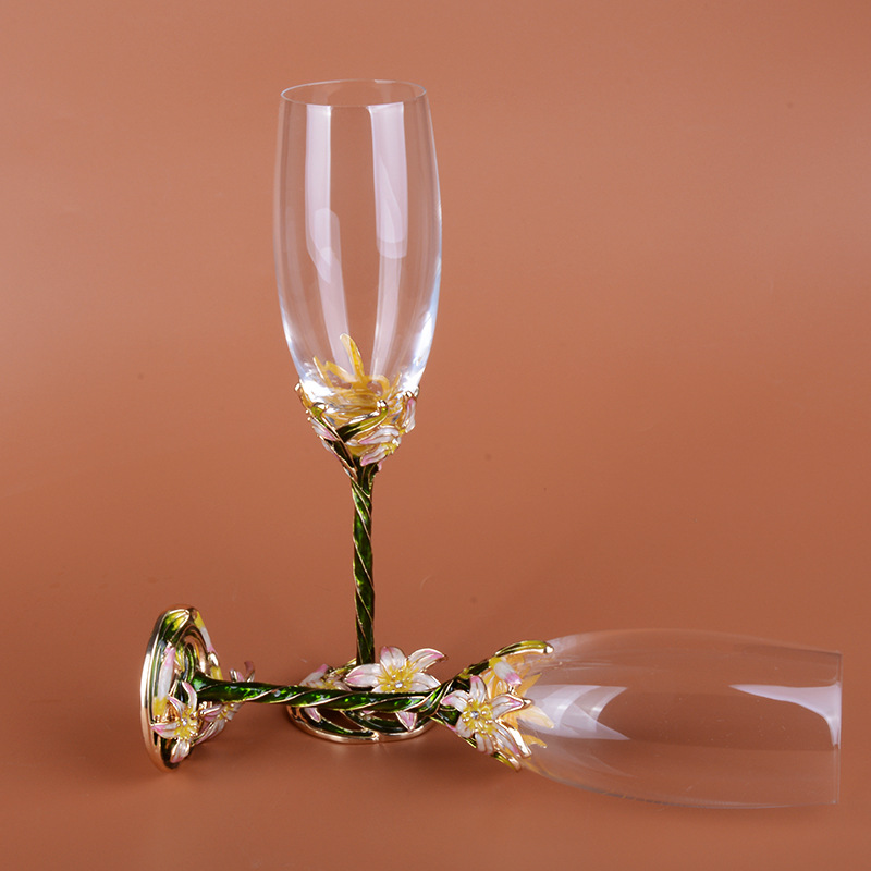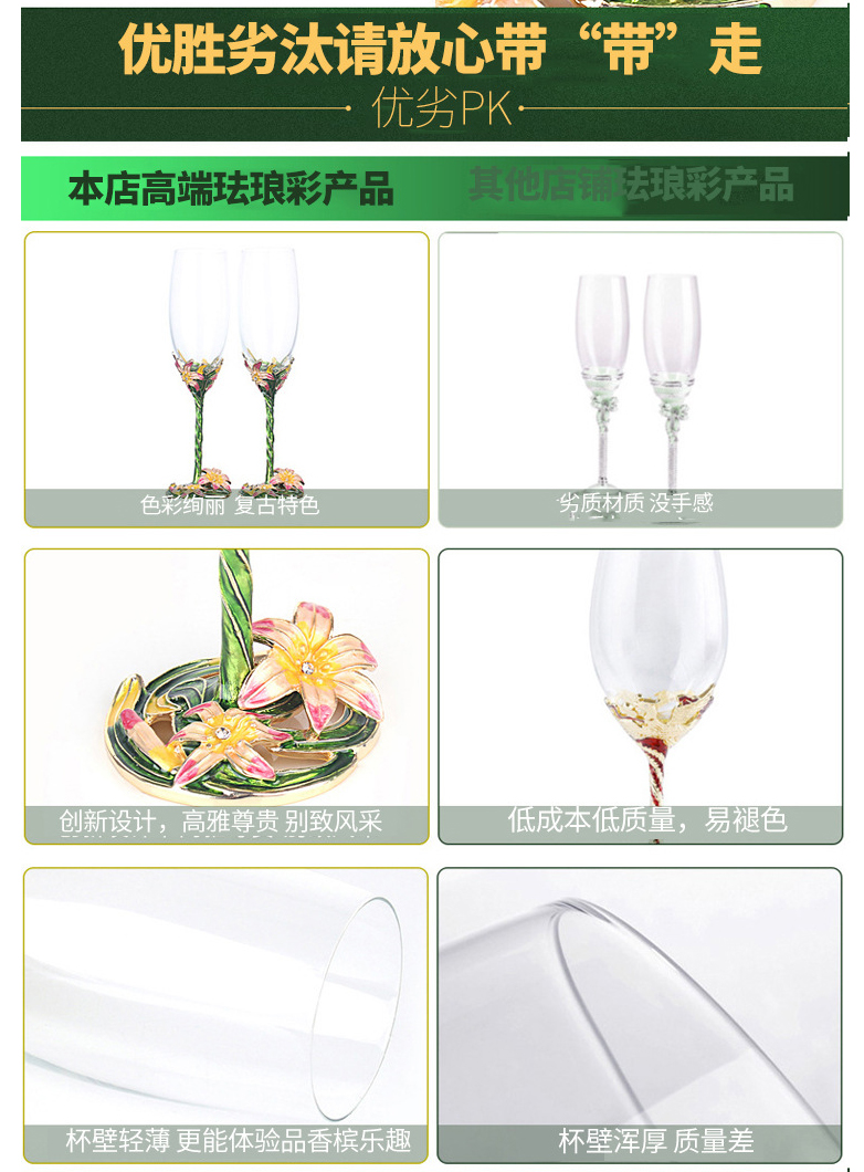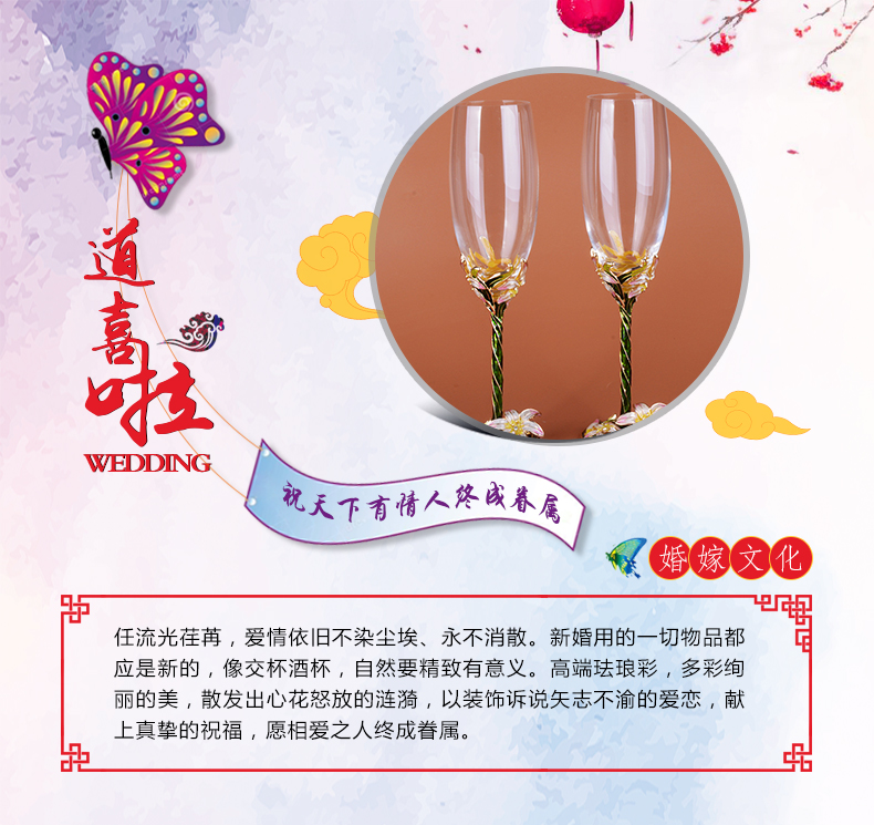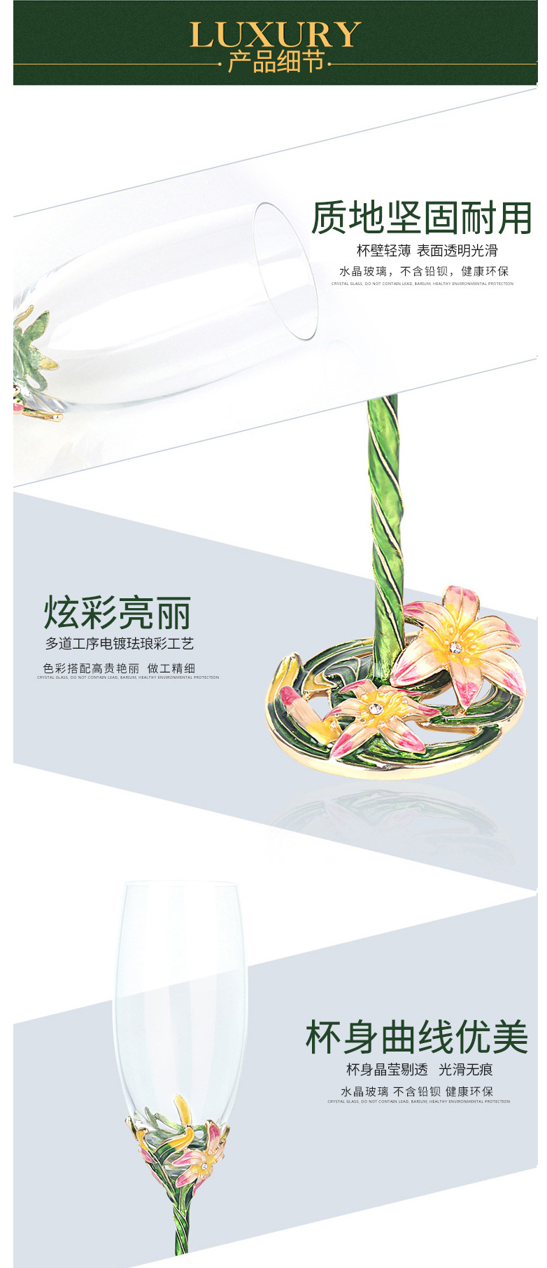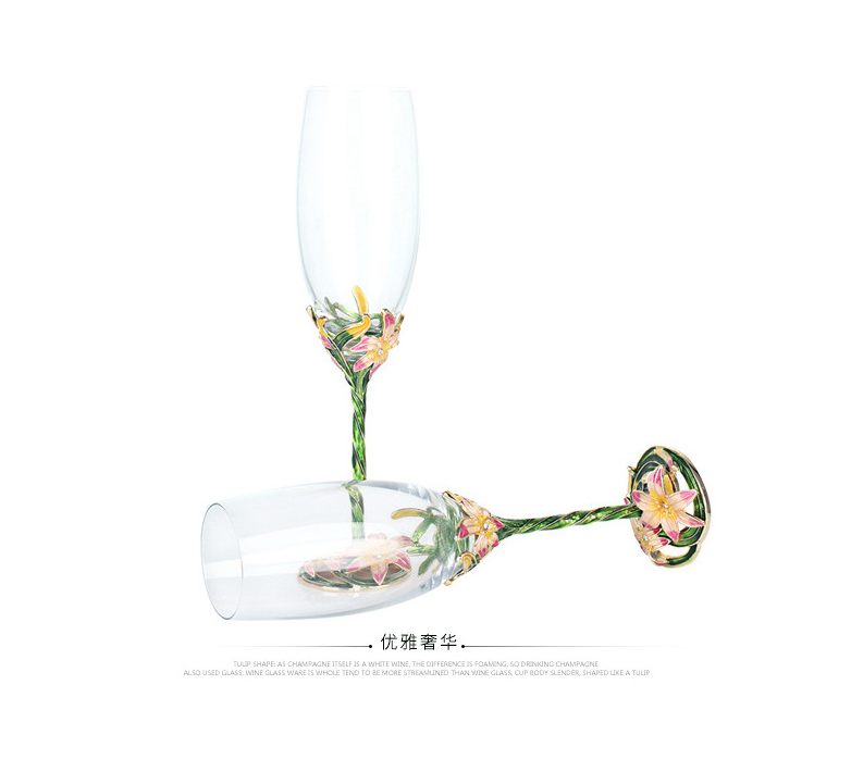 创意珐琅彩香槟杯高档新婚酒杯--聚爱城