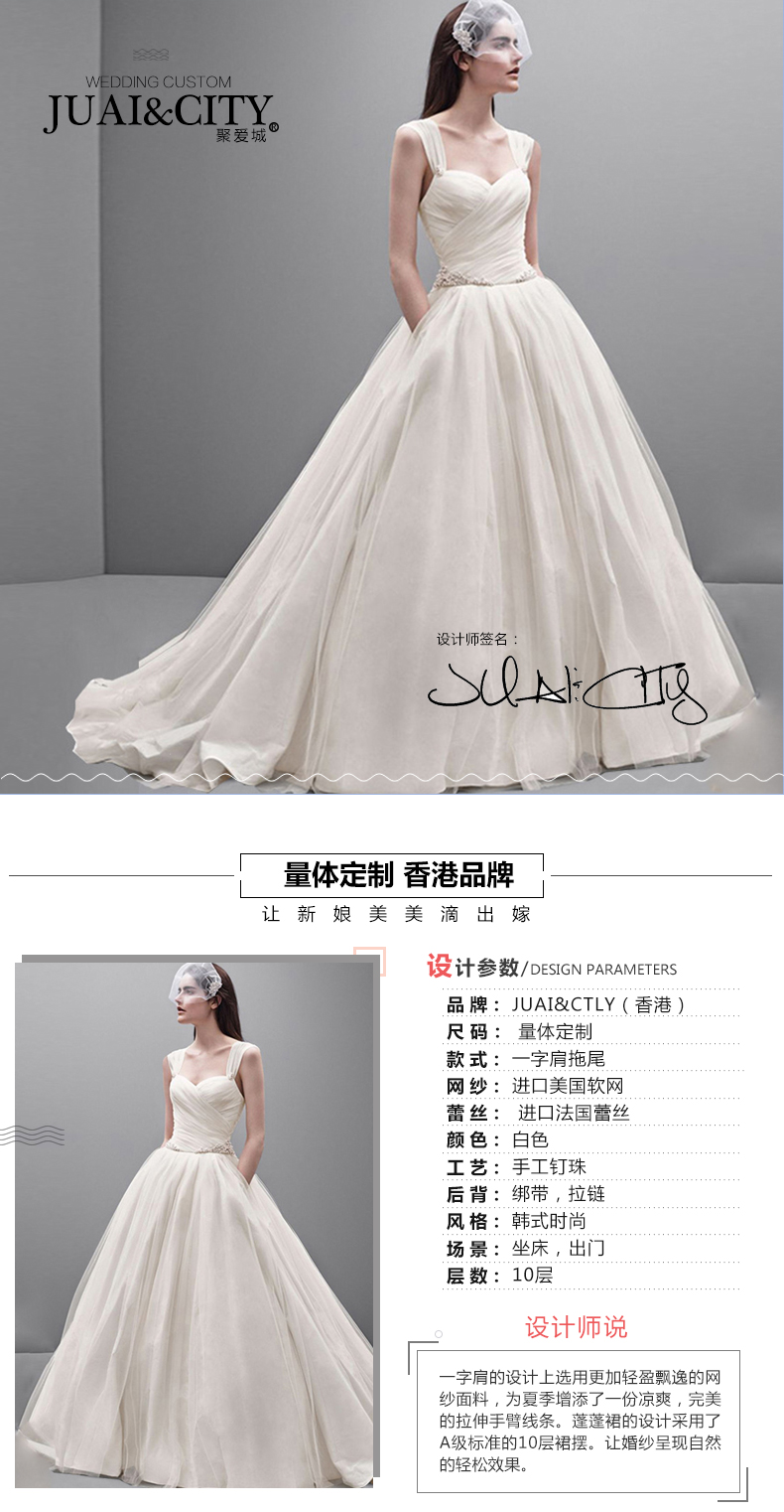 一字肩梦幻公主显瘦新娘婚纱--聚爱城