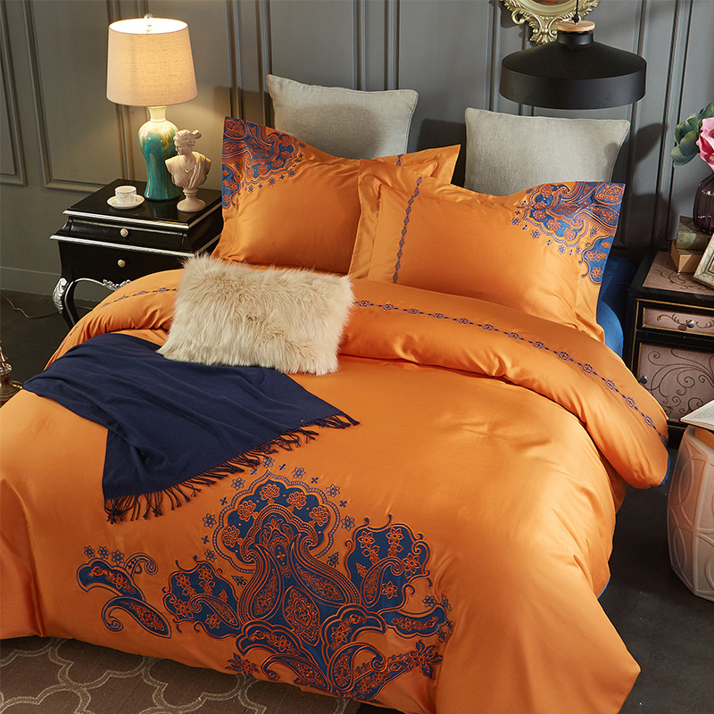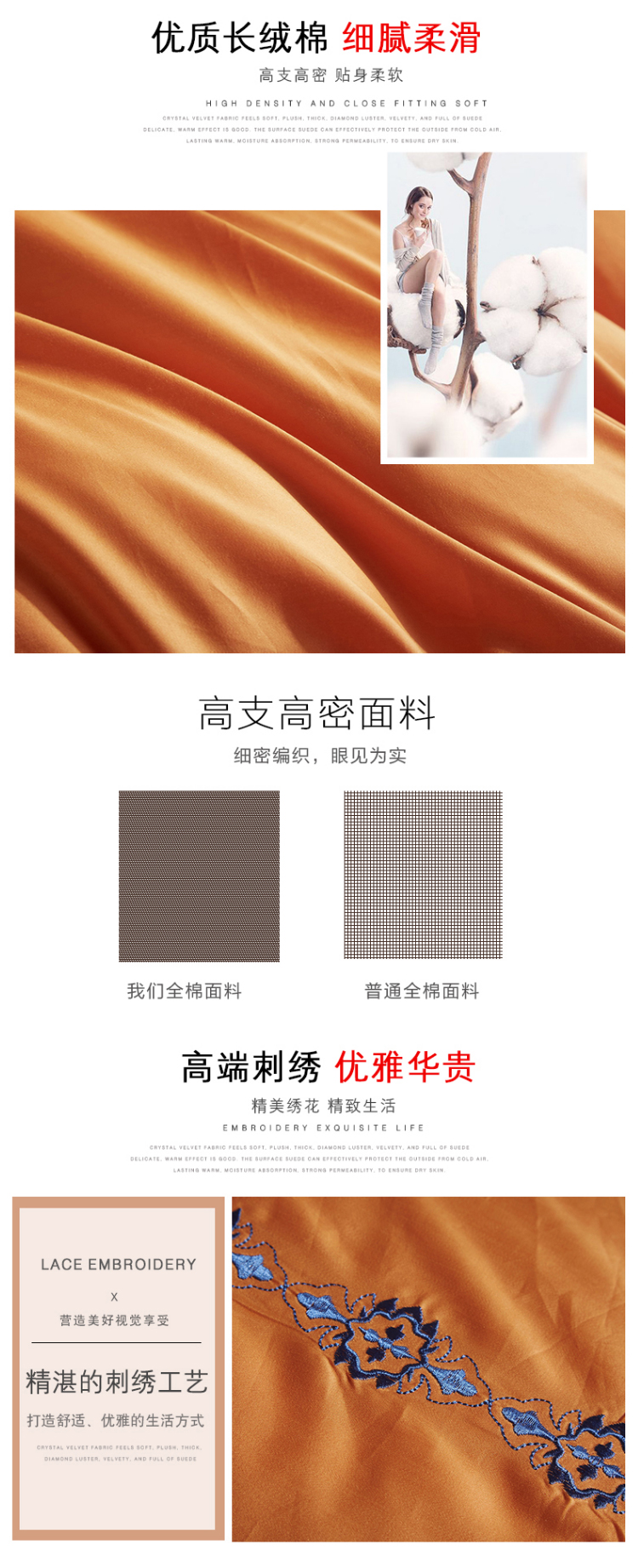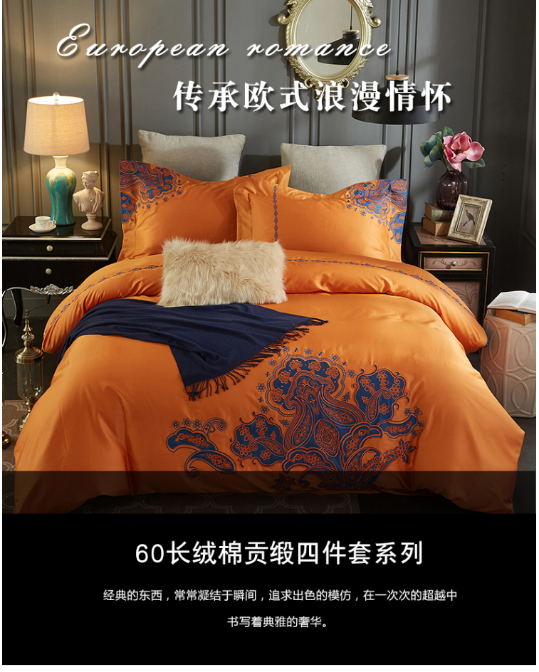 高档全棉贡缎刺绣花60支长绒棉四件套