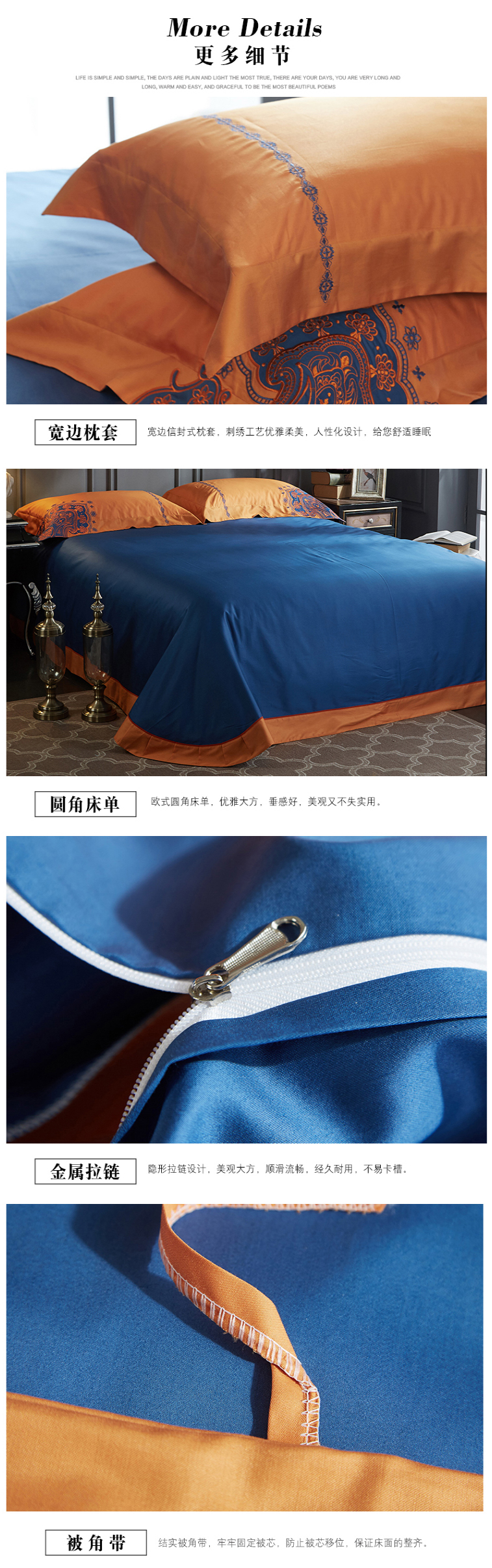 高档全棉贡缎刺绣花60支长绒棉四件套--聚爱城
