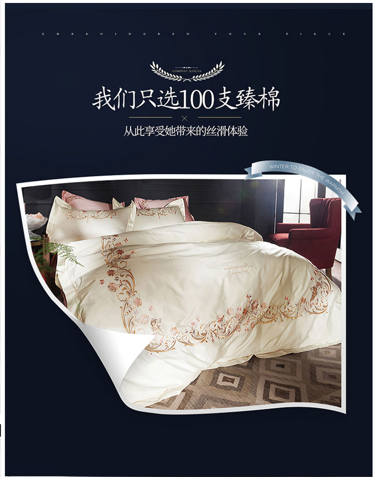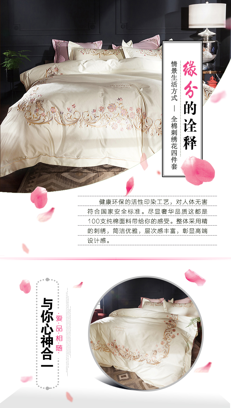 100支长绒高档贡缎全棉刺绣花四件套--聚爱城