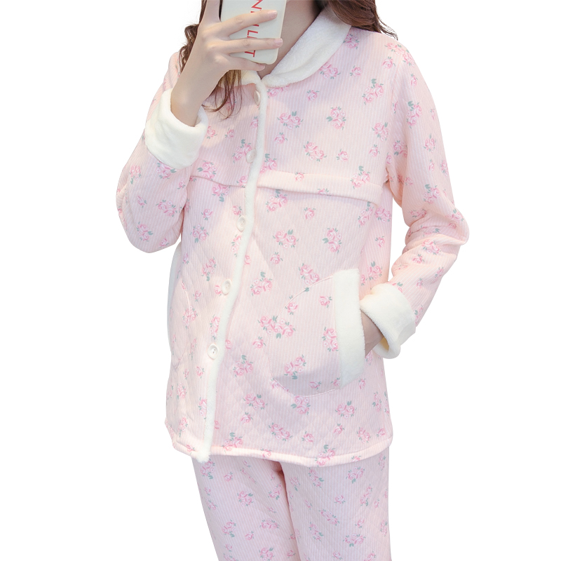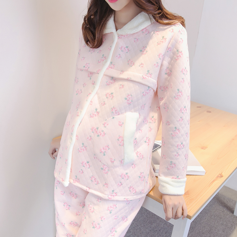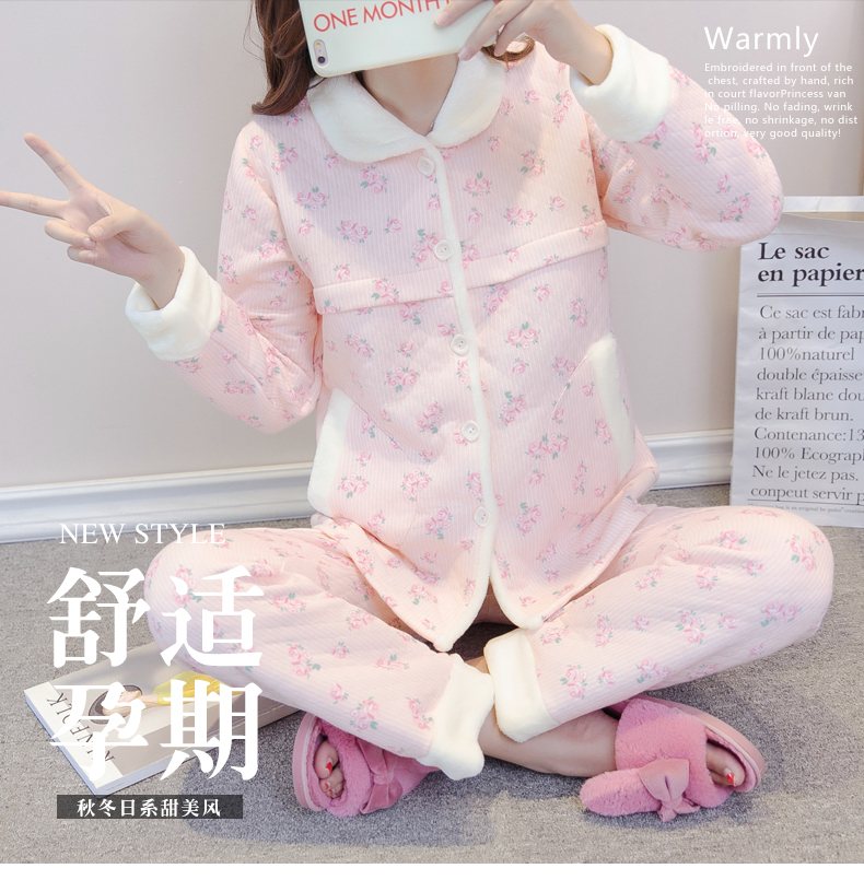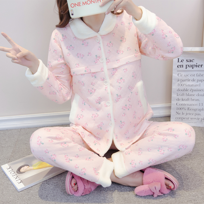夹棉产后加厚哺乳睡衣
