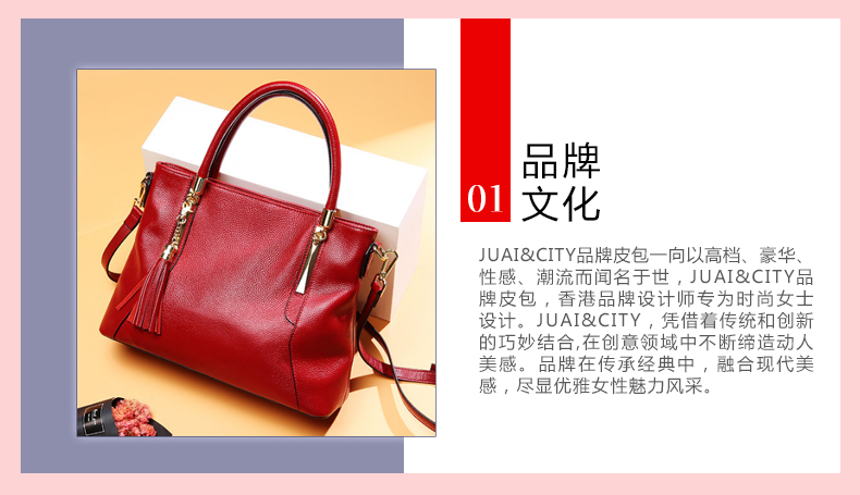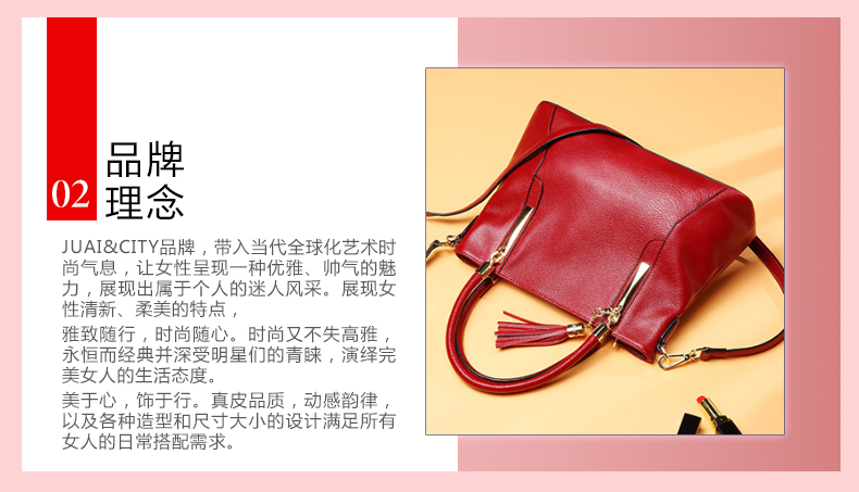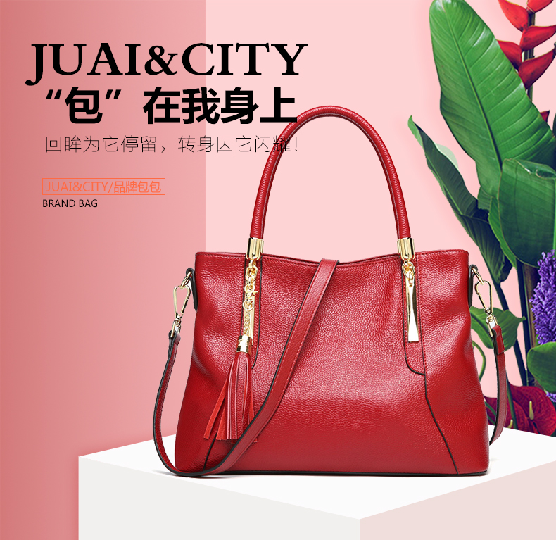 【红色】秋冬时尚流苏头层牛皮大包单肩斜挎手提包--聚爱城