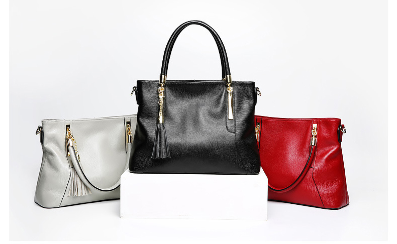 【红色】秋冬时尚流苏头层牛皮大包单肩斜挎手提包