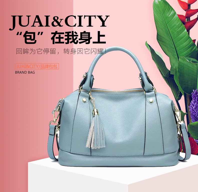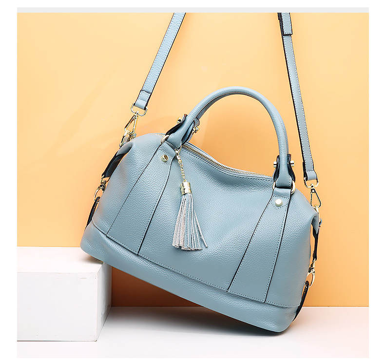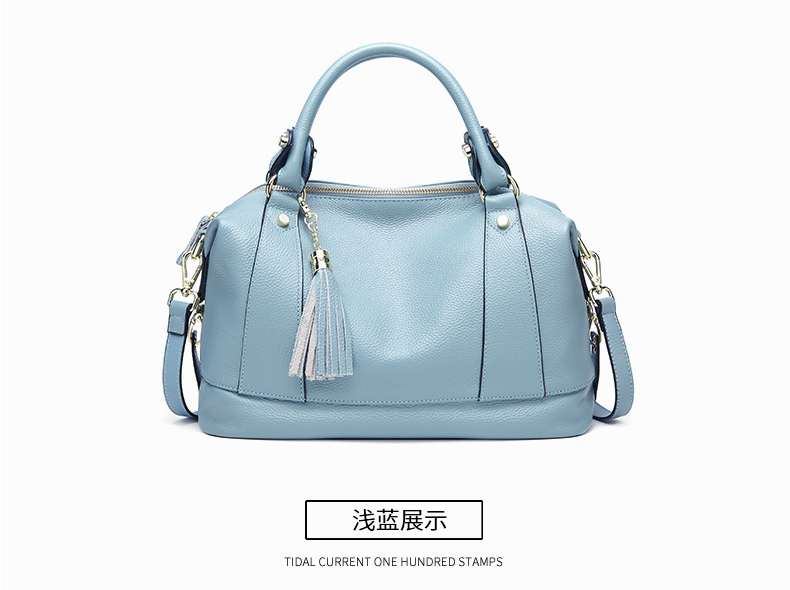【浅蓝色】真皮潮单肩包流苏头层牛皮--聚爱城
