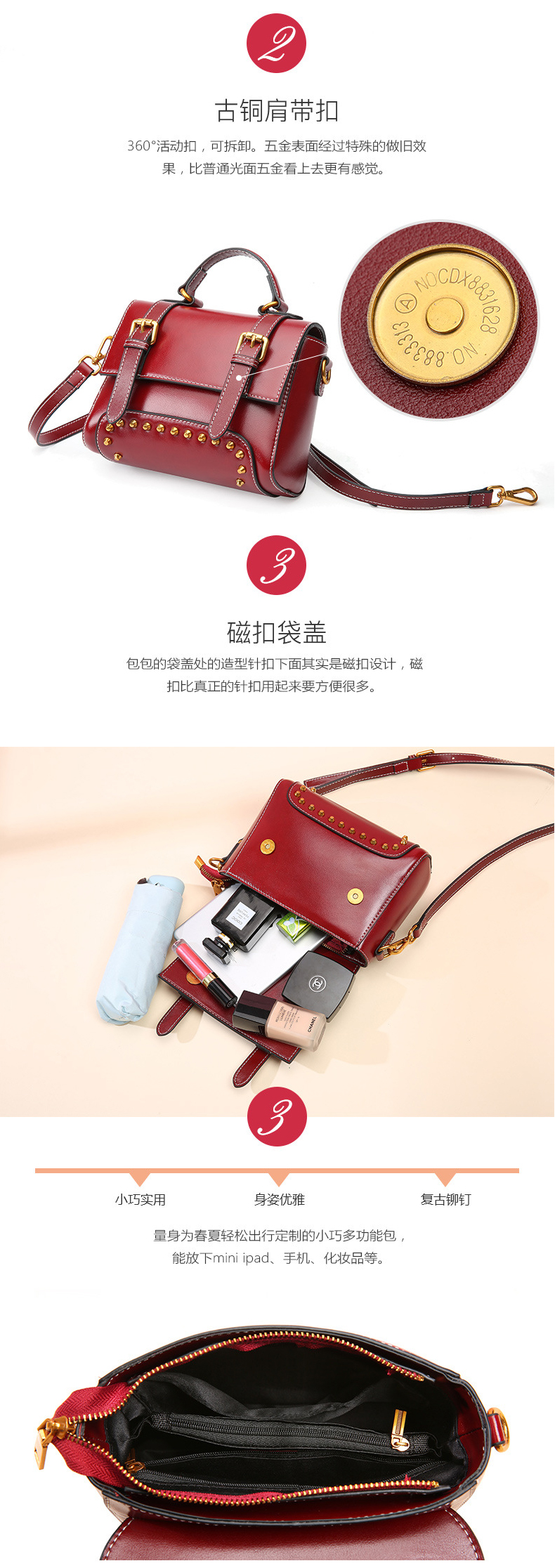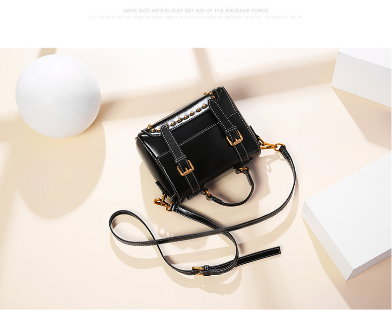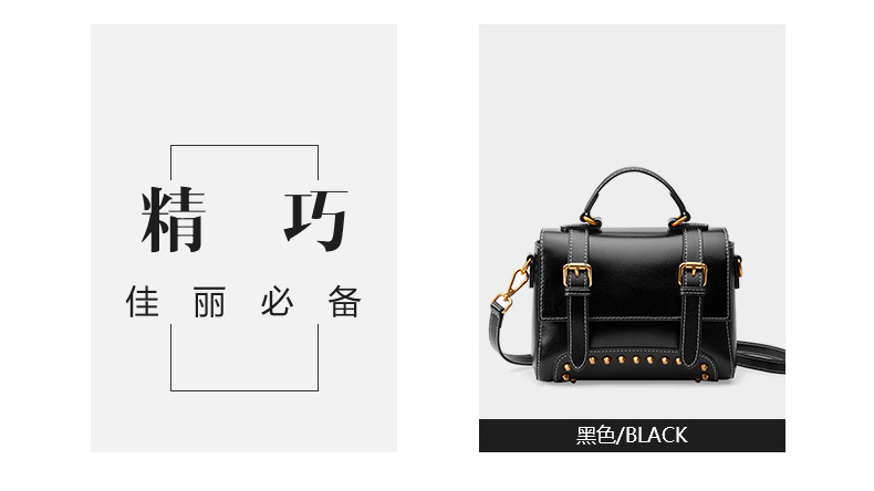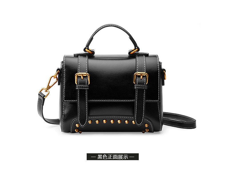 【黑色】复古风牛皮手提女单肩斜挎小方包