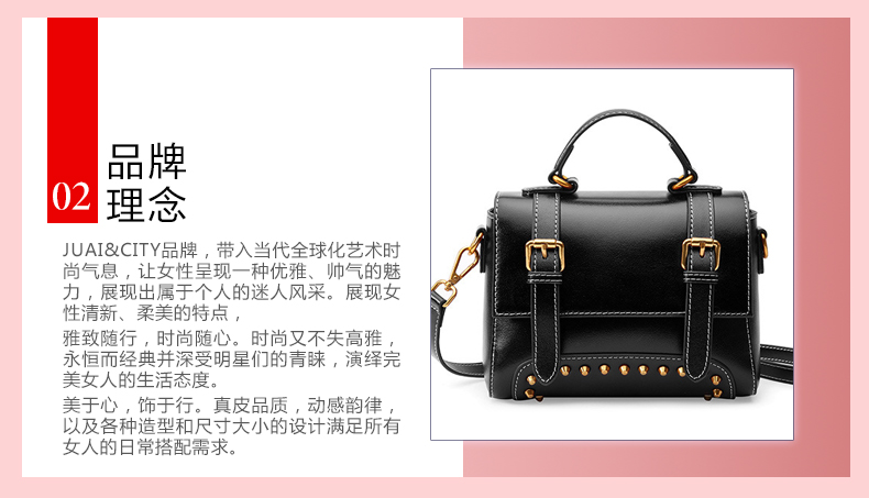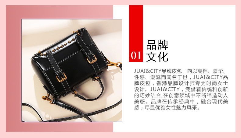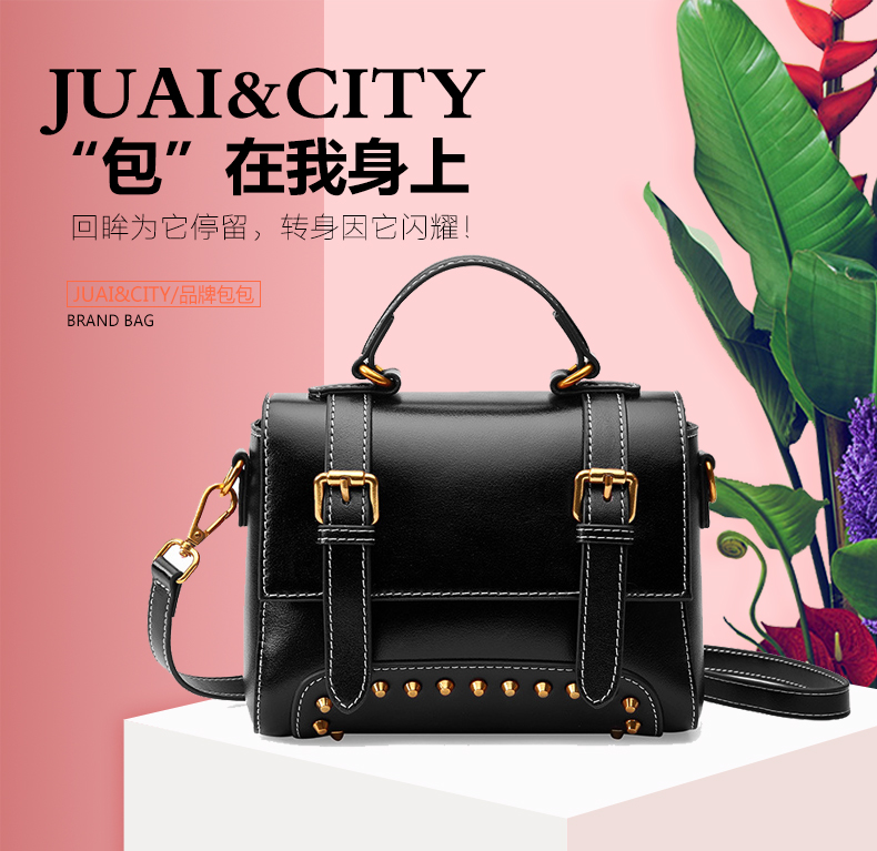 【黑色】复古风牛皮手提女单肩斜挎小方包--聚爱城
