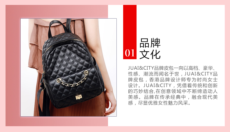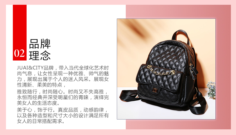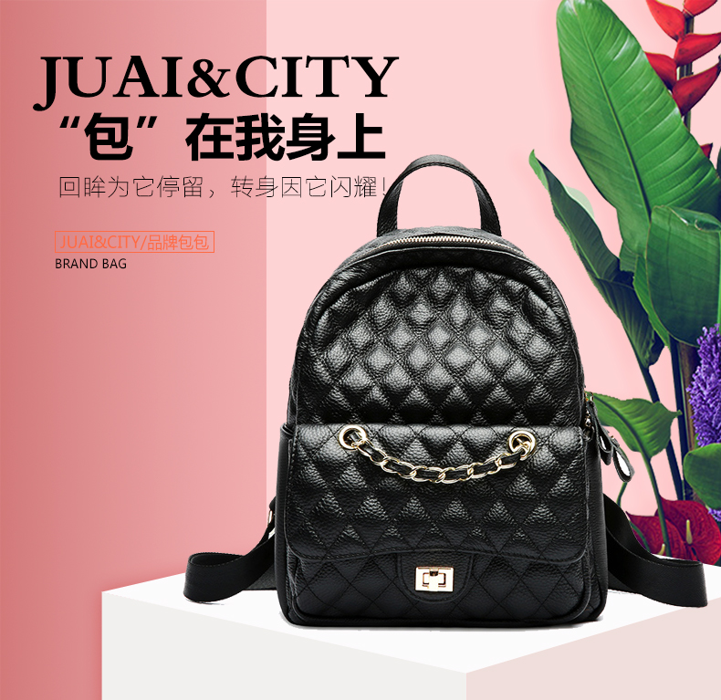 【黑色】真皮小香风菱格双肩包时尚小背包--聚爱城