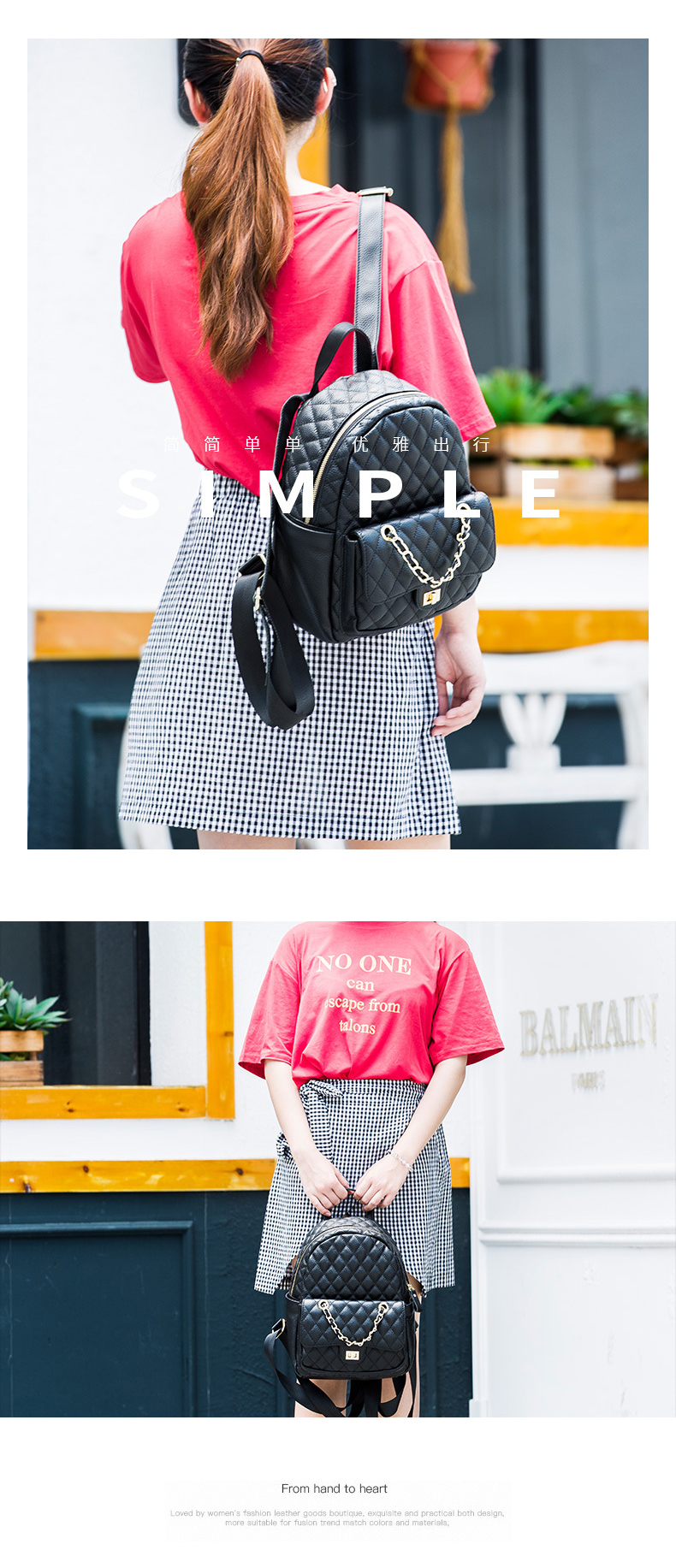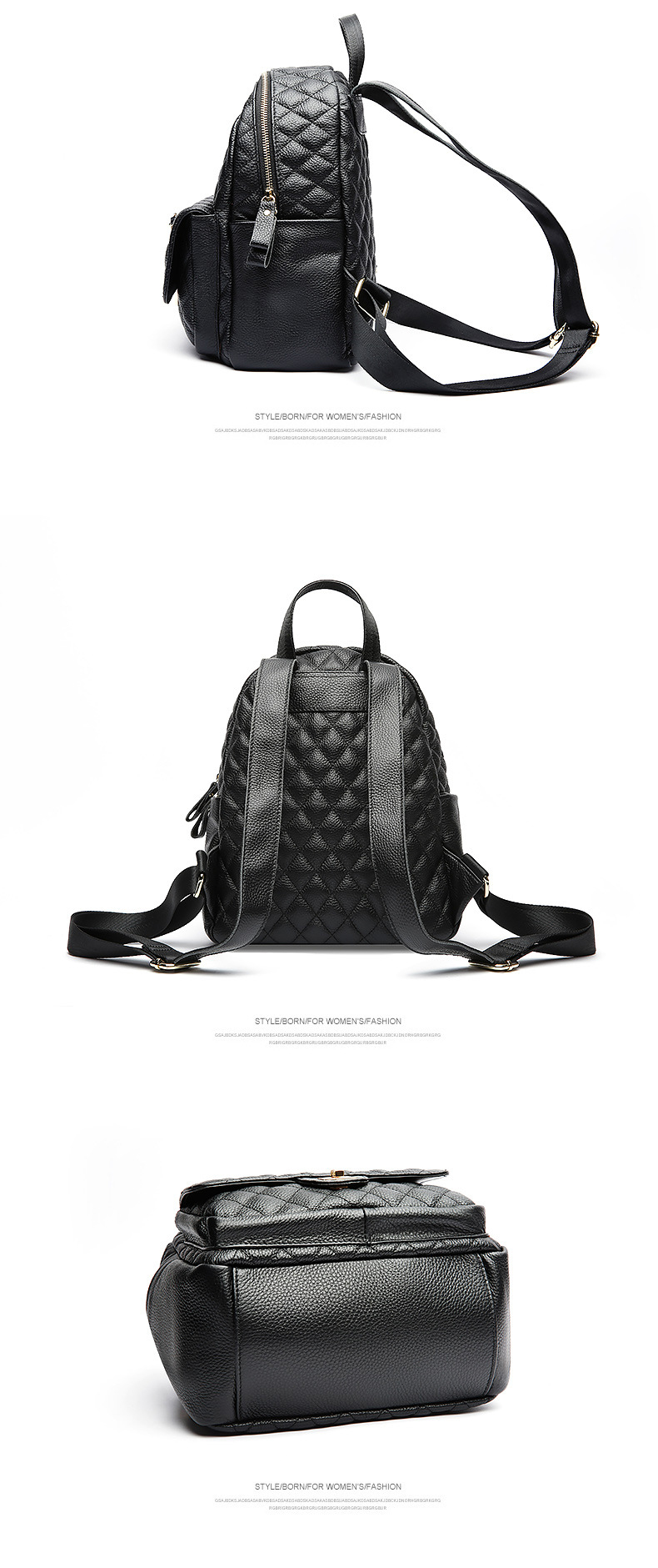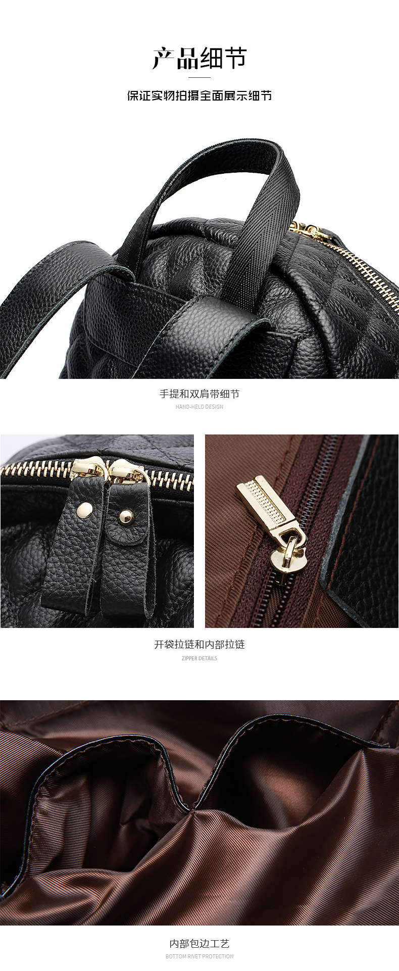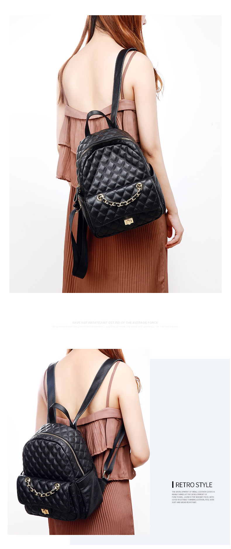 【黑色】真皮小香风菱格双肩包时尚小背包