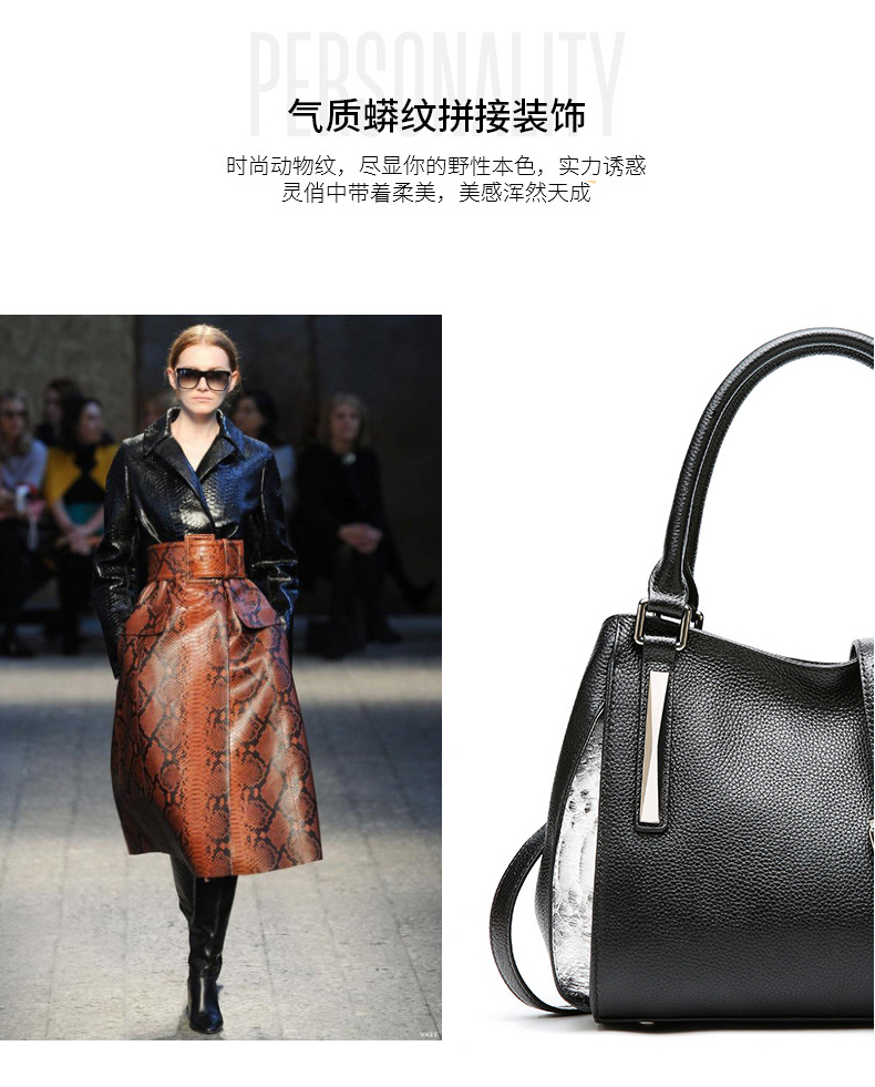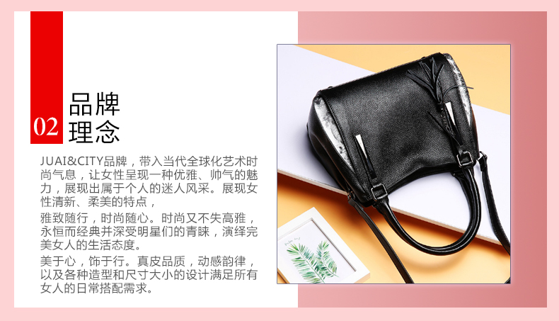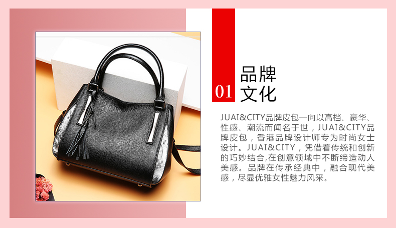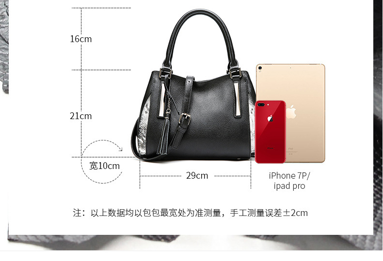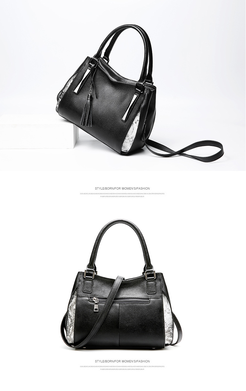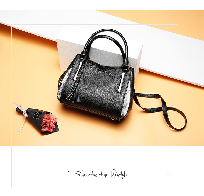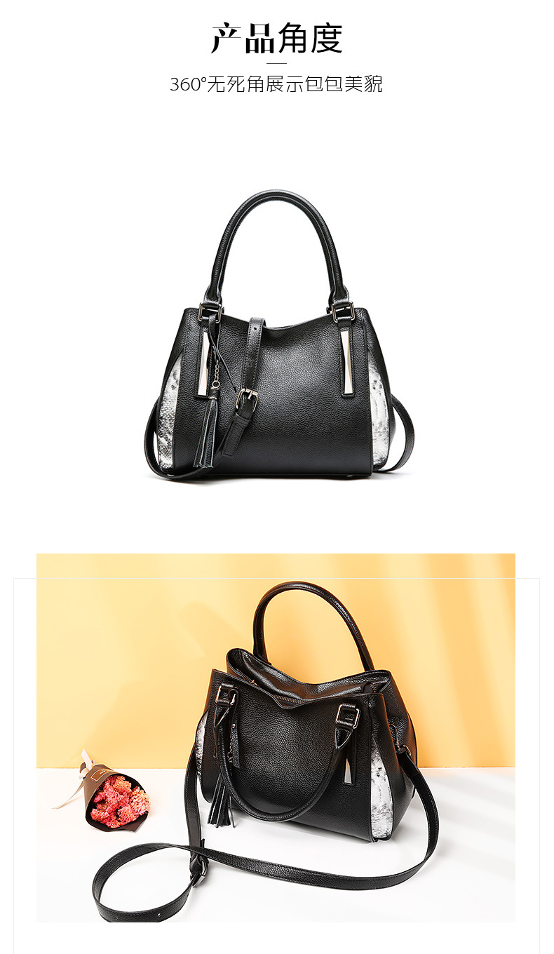【黑色】头层牛皮流苏欧美时尚真皮单肩包--聚爱城