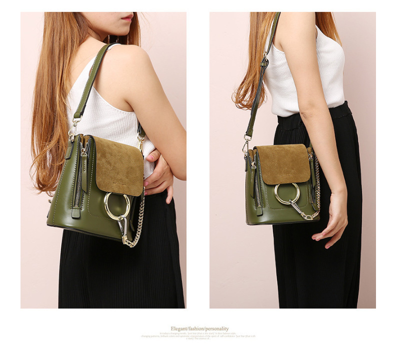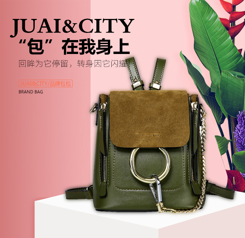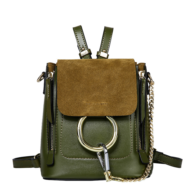 【橄榄绿色】牛皮单肩斜挎圆环双肩包--聚爱城