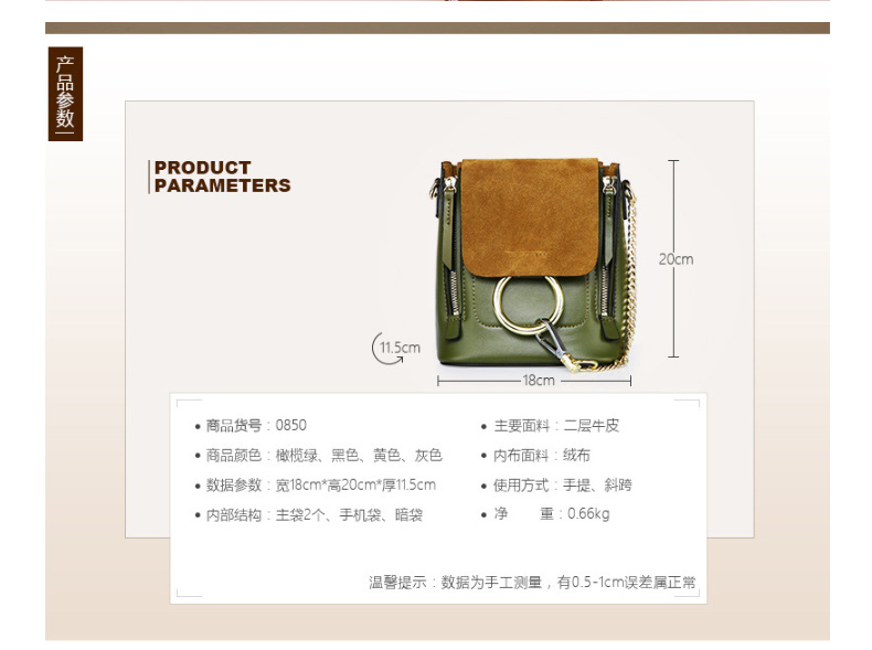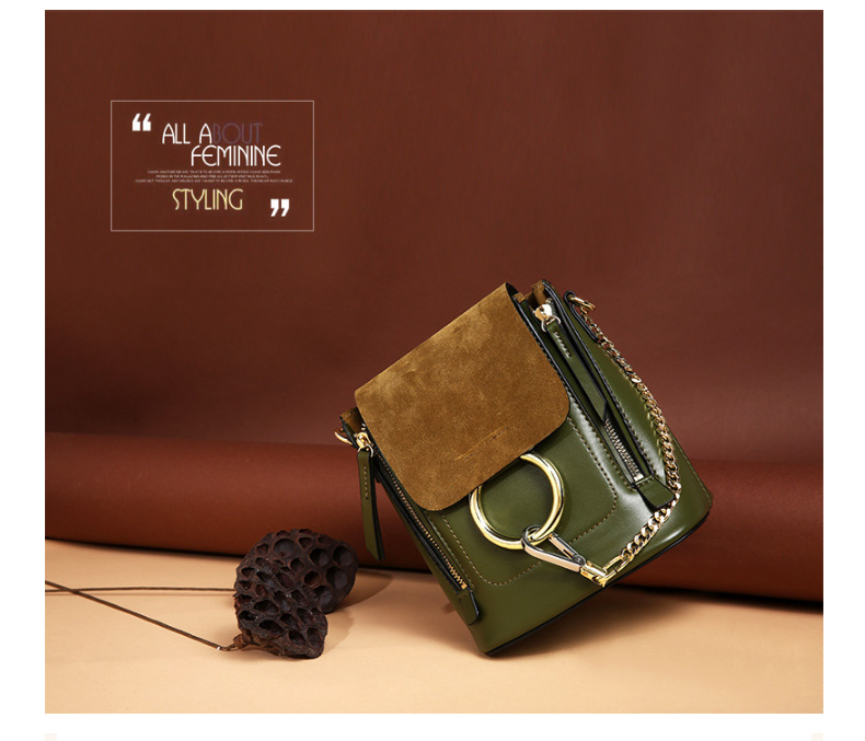 【橄榄绿色】牛皮单肩斜挎圆环双肩包