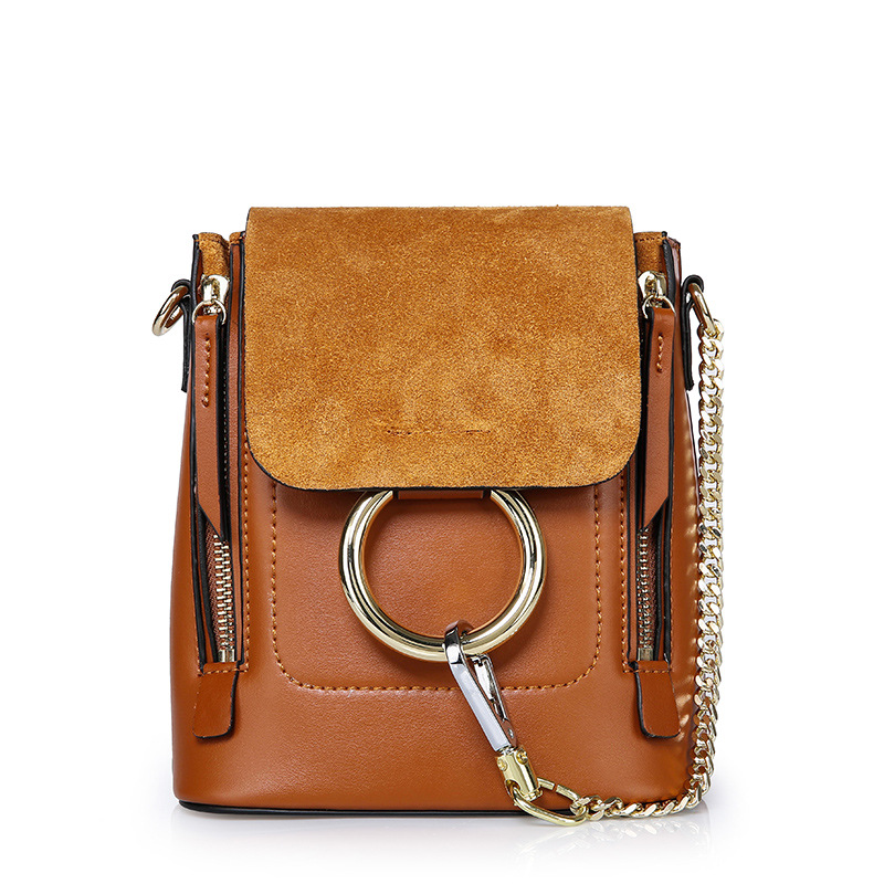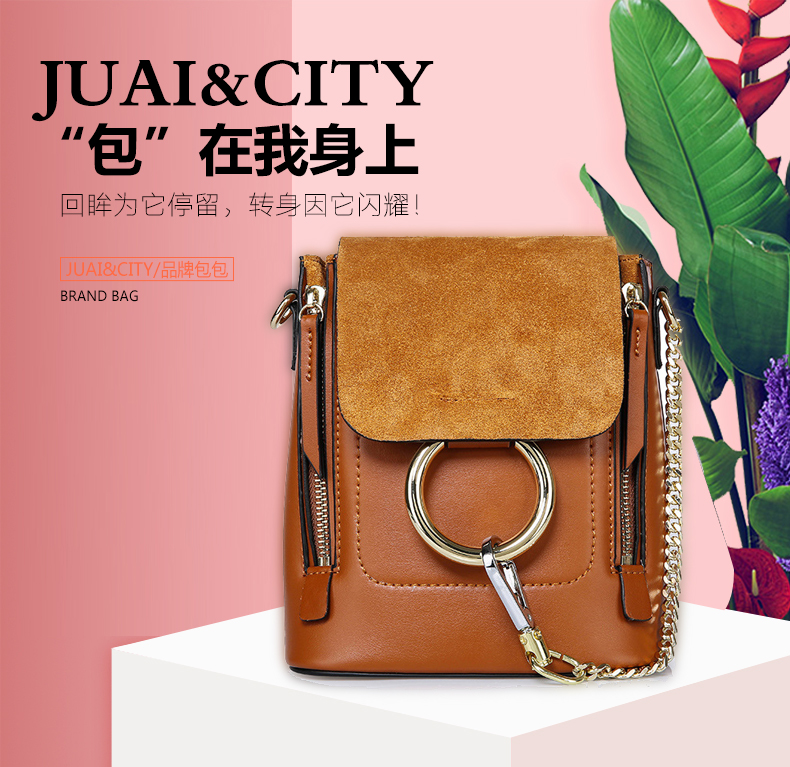 【焦糖色】牛皮单肩斜挎圆环双肩包--聚爱城