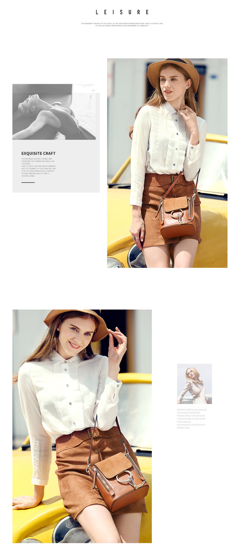 【焦糖色】牛皮单肩斜挎圆环双肩包