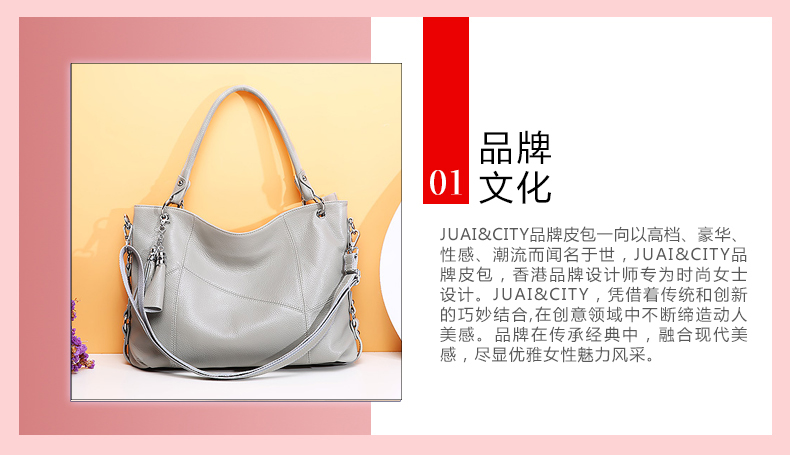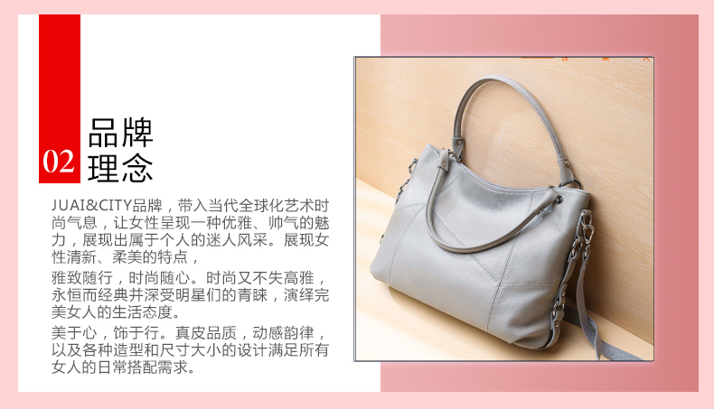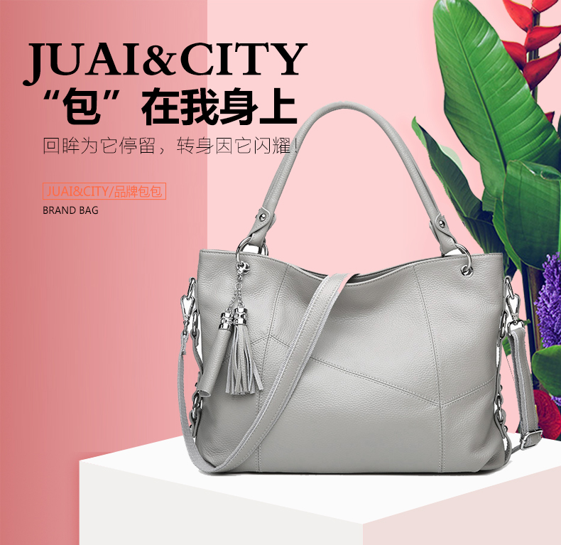 【灰色】头层牛皮荔枝纹手提包--聚爱城