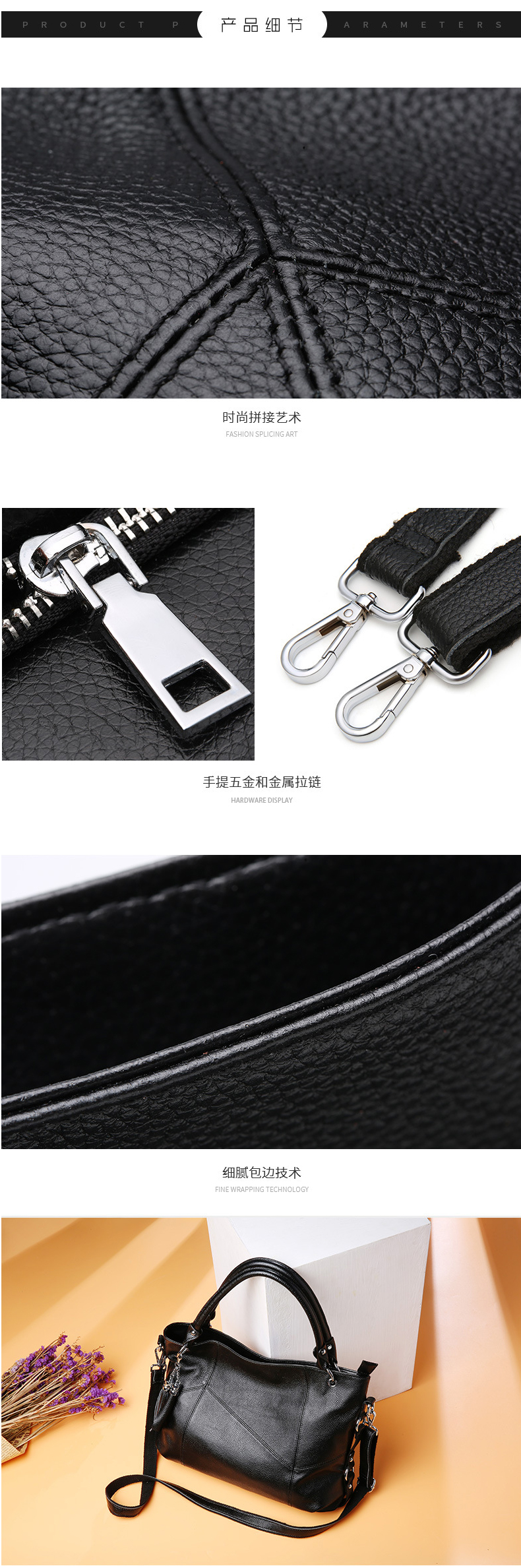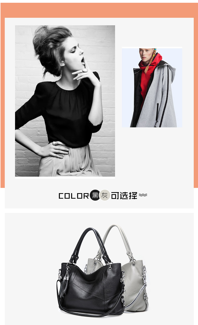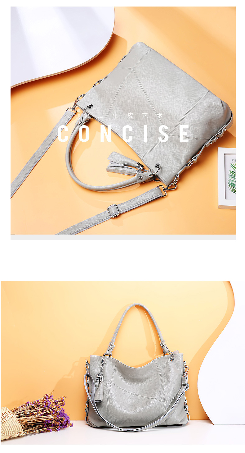 【灰色】头层牛皮荔枝纹手提包