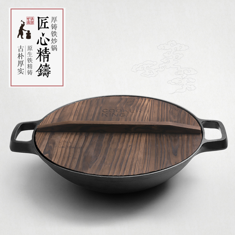炊大皇厚铸铁双耳炒锅 铁锅36cm 电磁炉通用