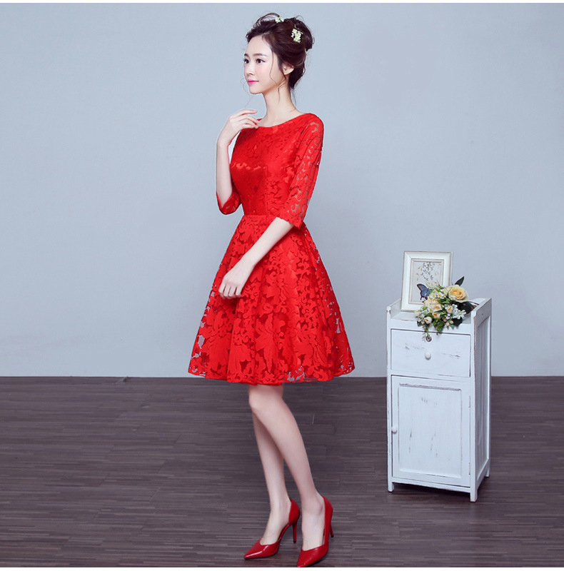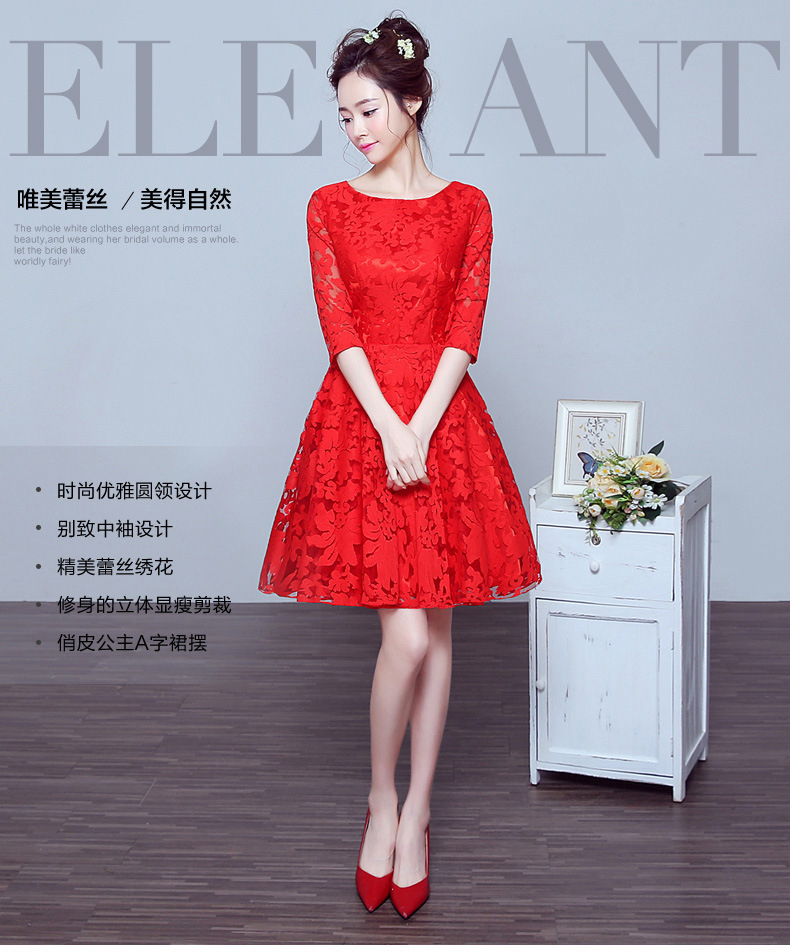 【量体定制】时尚精致蕾丝修身版敬酒服--聚爱城