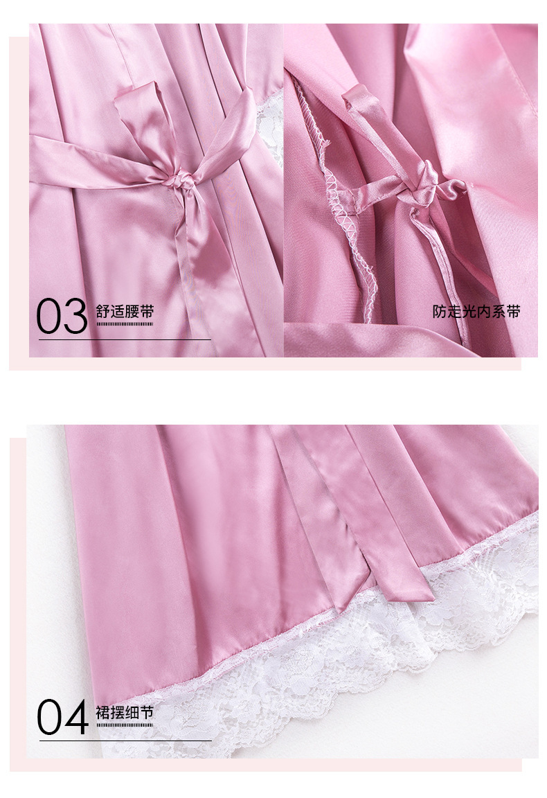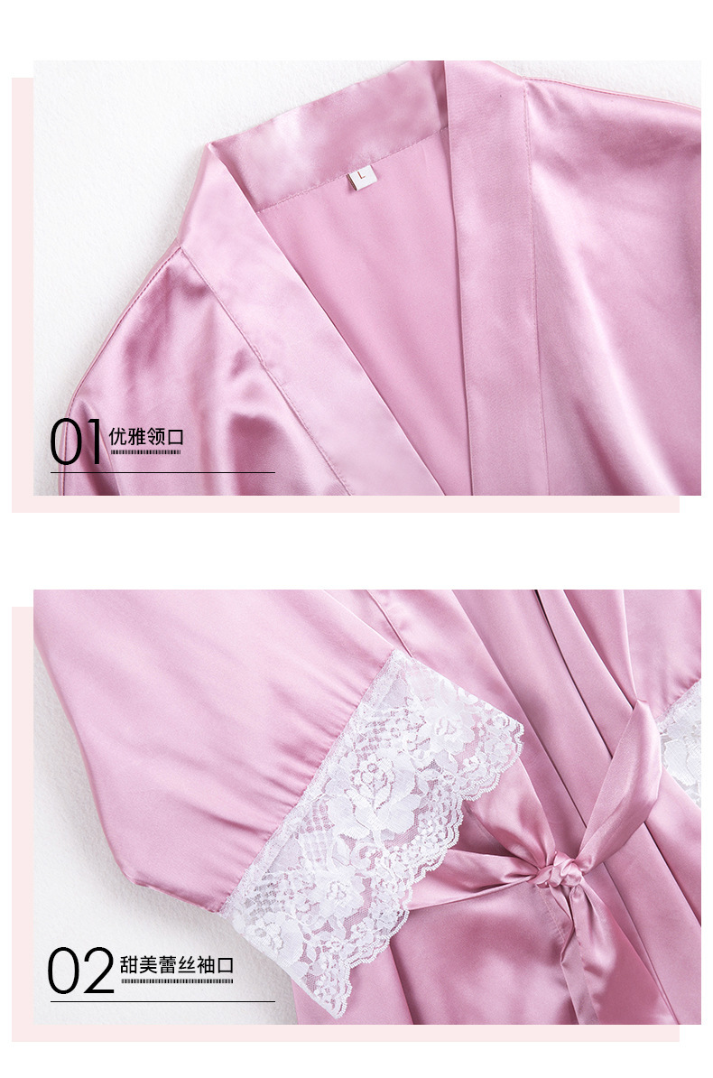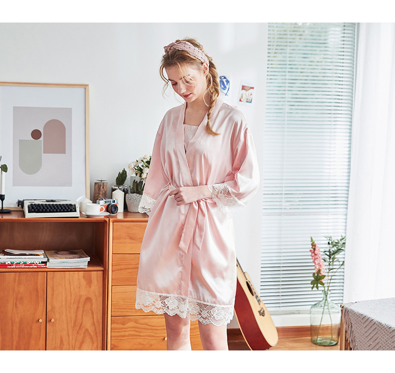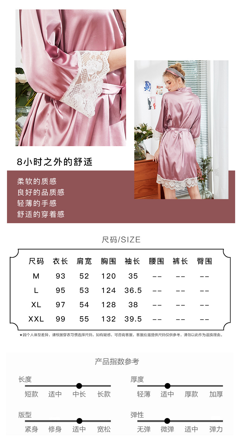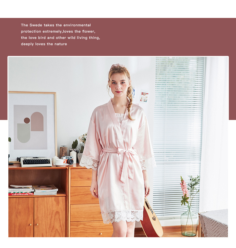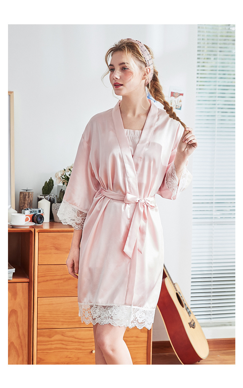 丝绸薄款冰丝ins性感蕾丝伴娘晨袍--聚爱城