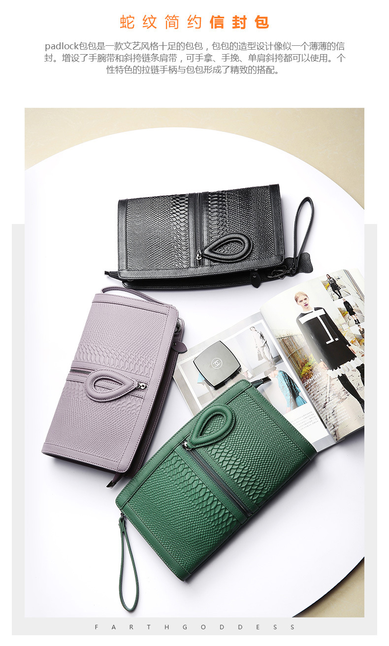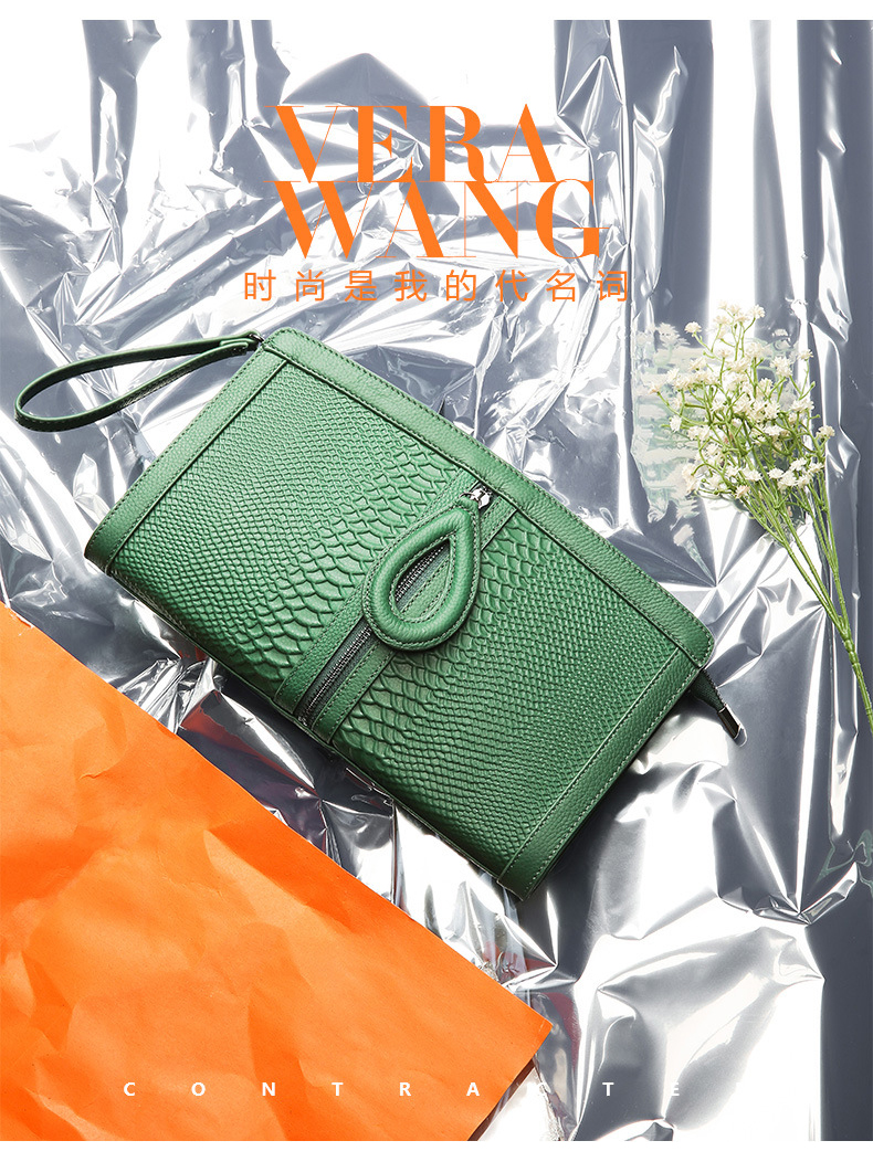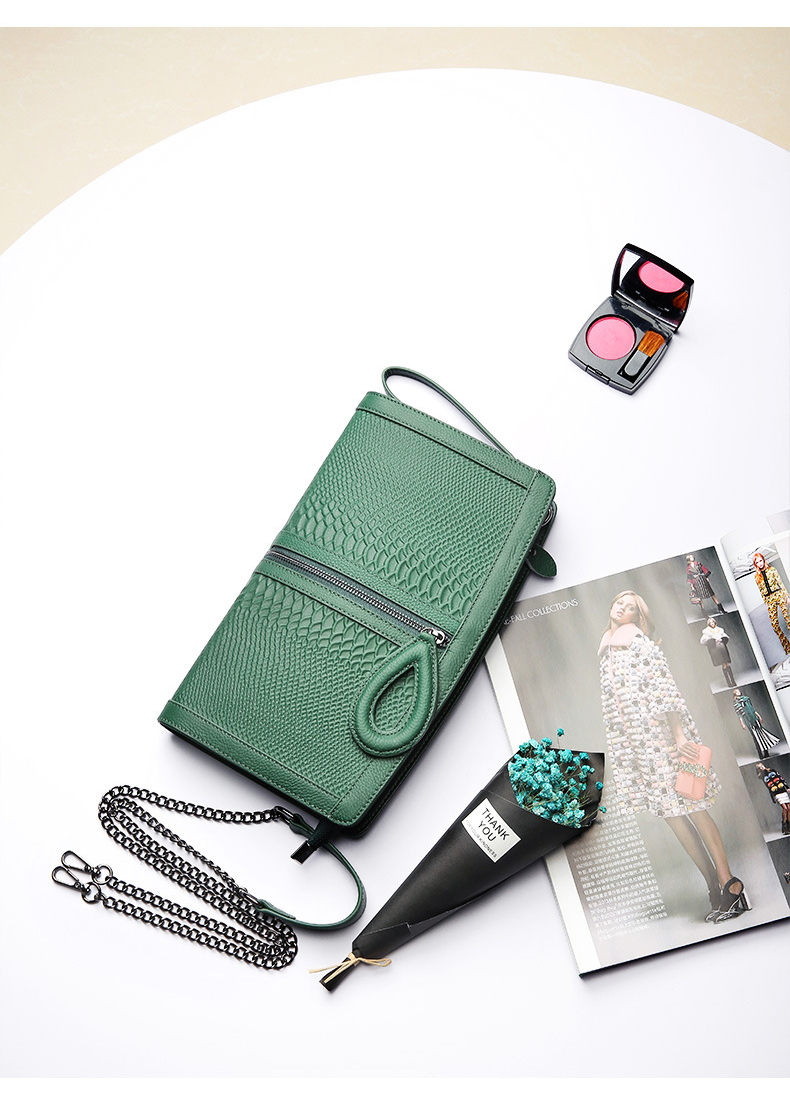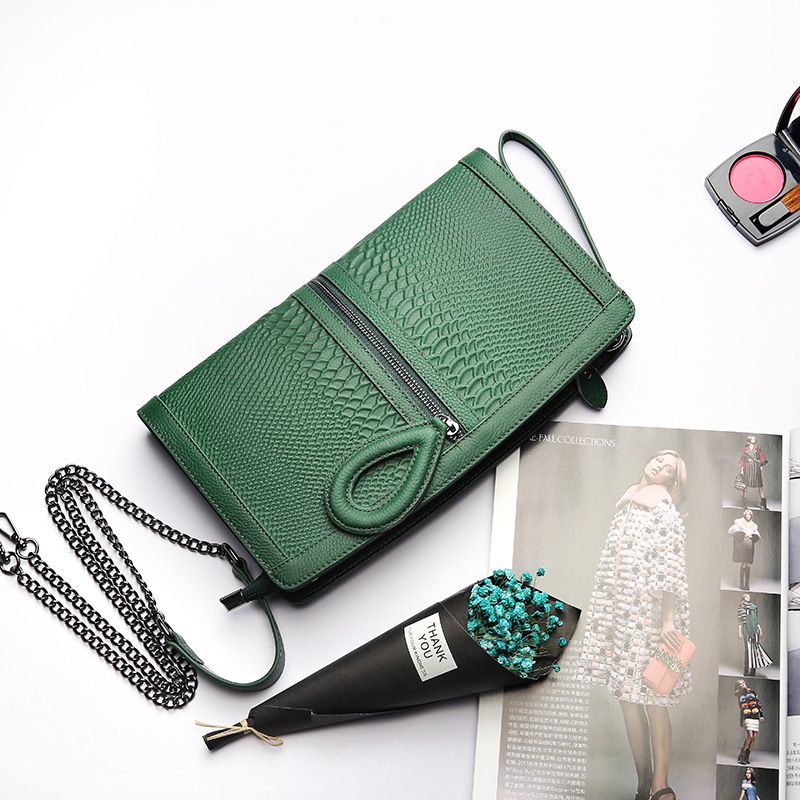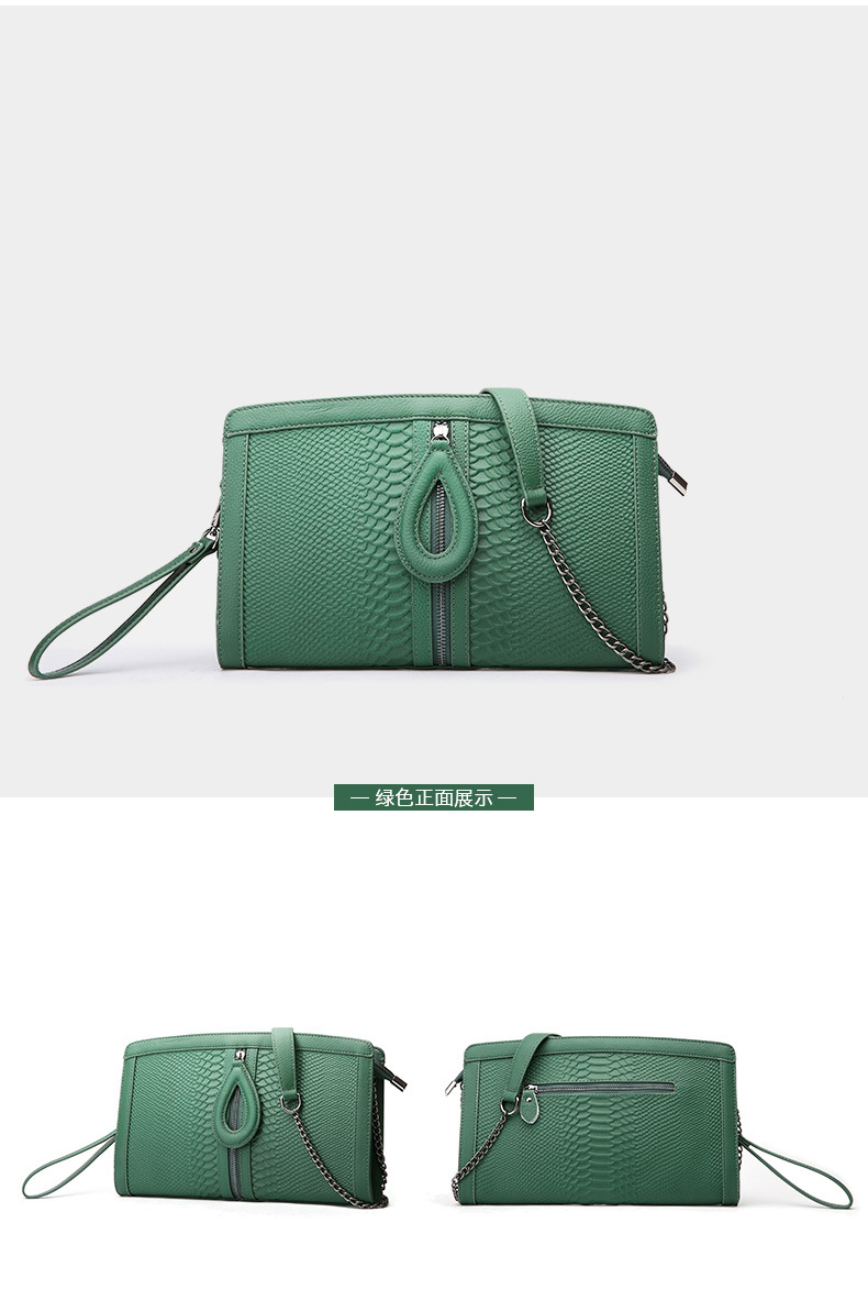【绿色】大容量欧美百搭腕包链条皮包--聚爱城