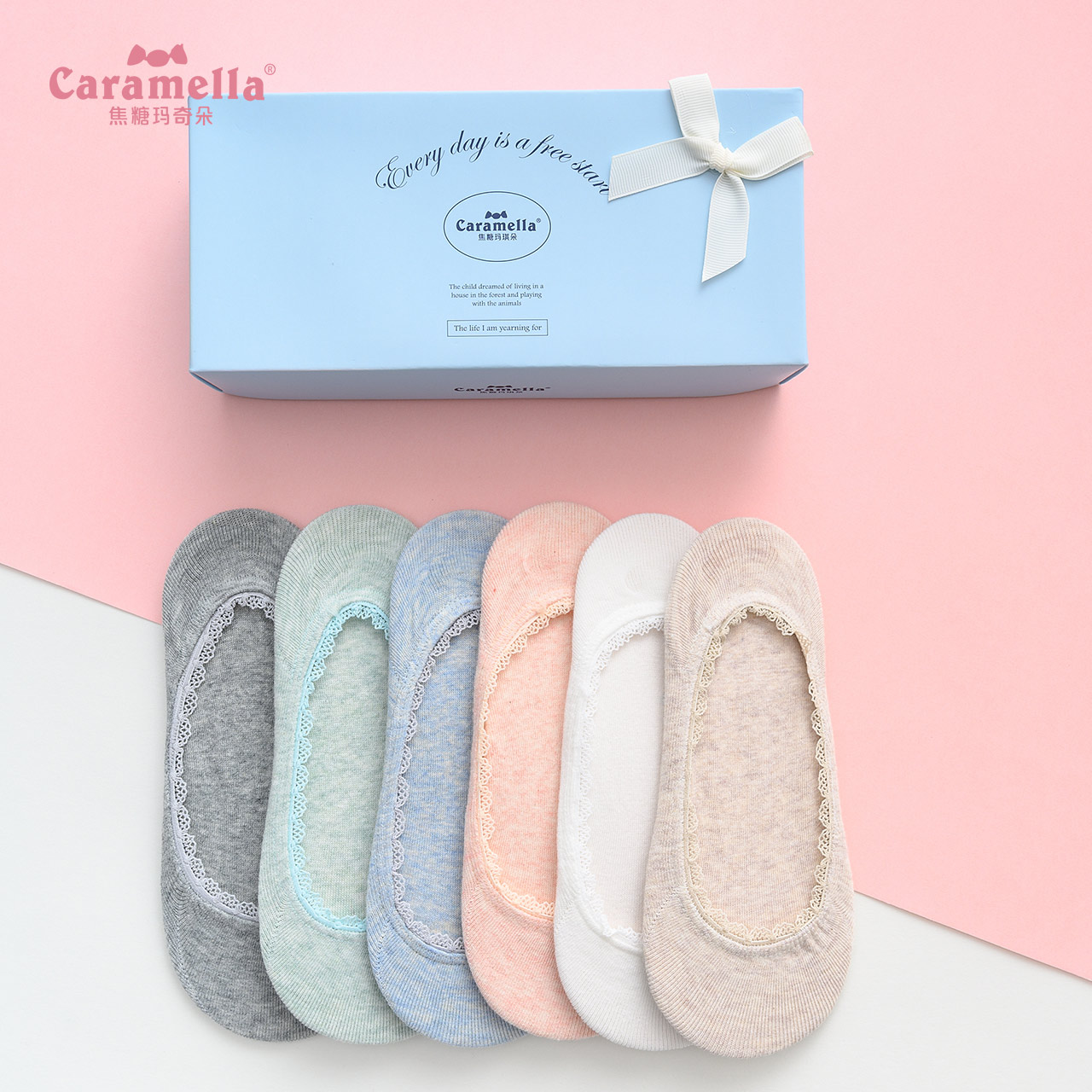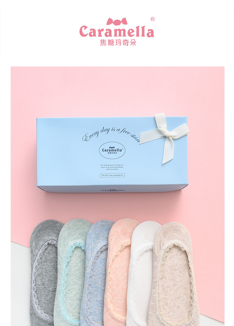 焦糖玛奇朵网眼船袜4双礼盒女袜,全网统一价24.9,点评抵金5元--聚爱城