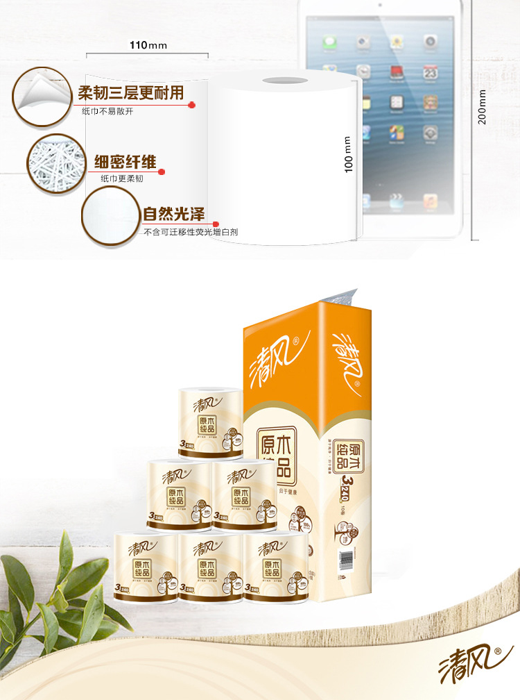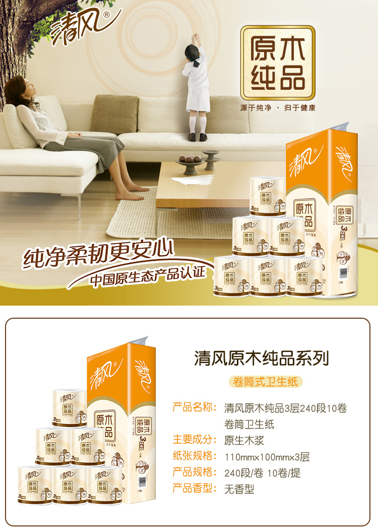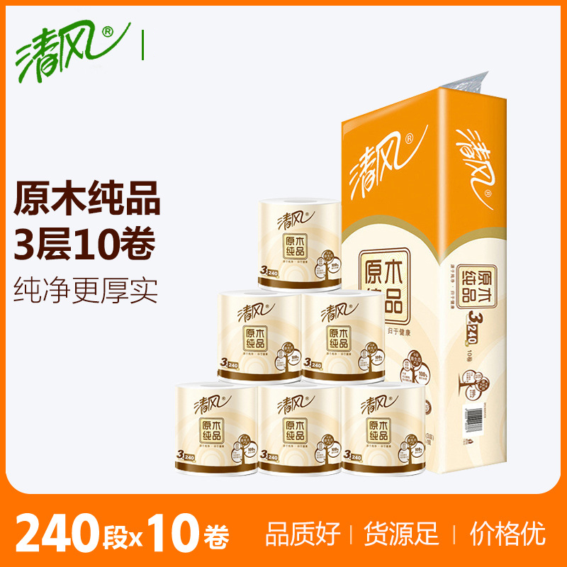 清风240段3层厚度空芯筒纸1提10卷,全网统一价:18.8,点评抵金1元